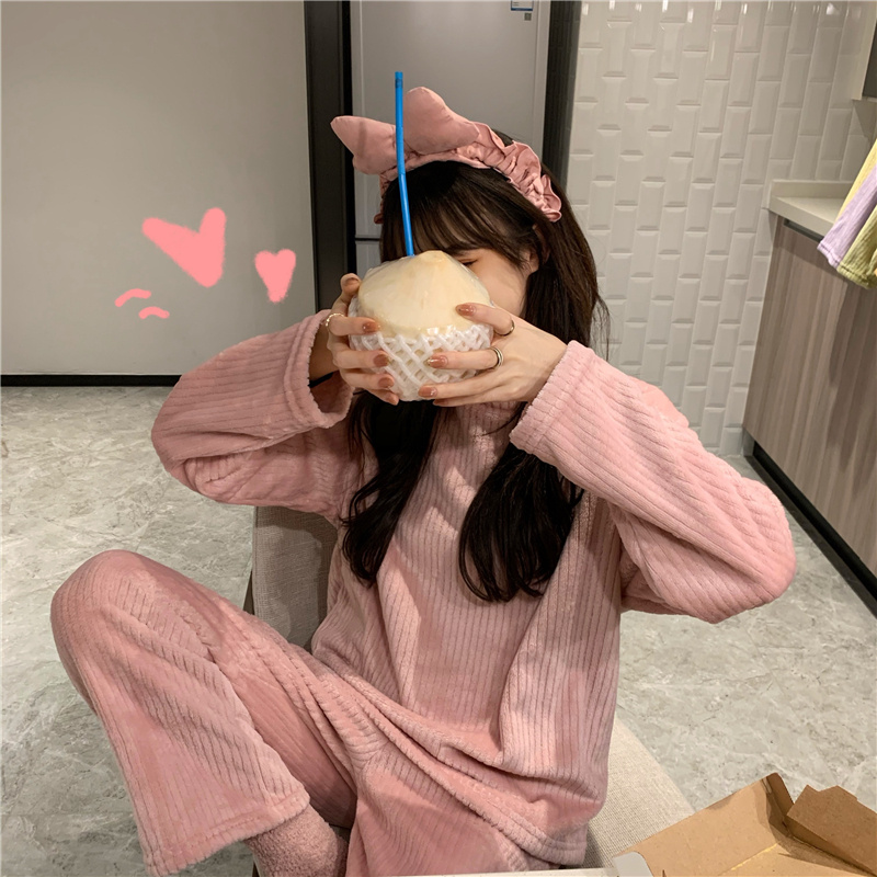 可外穿家居服两件套女秋冬韩版百搭甜美学生网红长袖睡衣睡裤套装 投诉