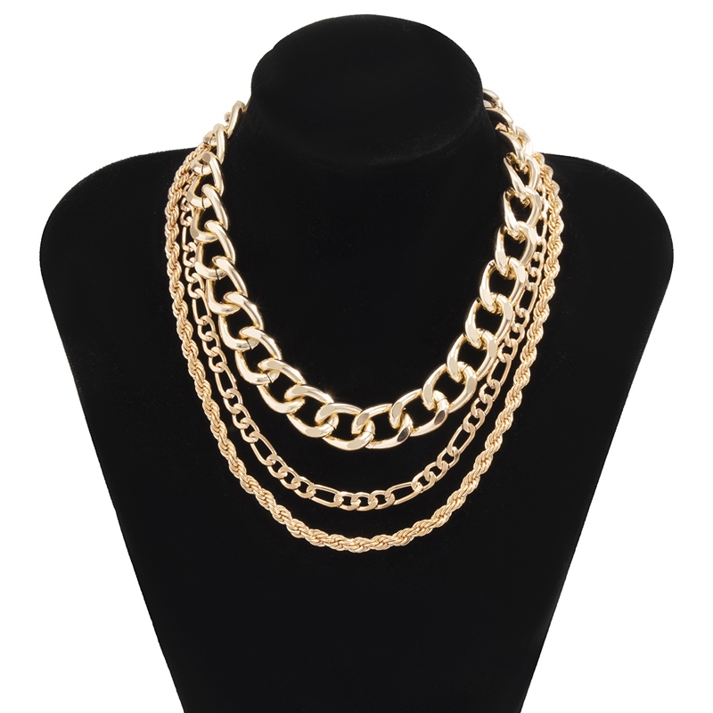 麻花链项链套装欧美嘻哈HIPHOPRAPPER说唱歌手男女粗链多层锁骨链 English | 投诉
