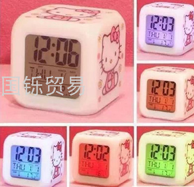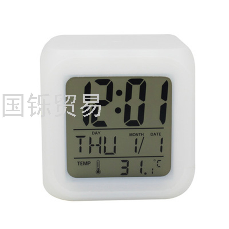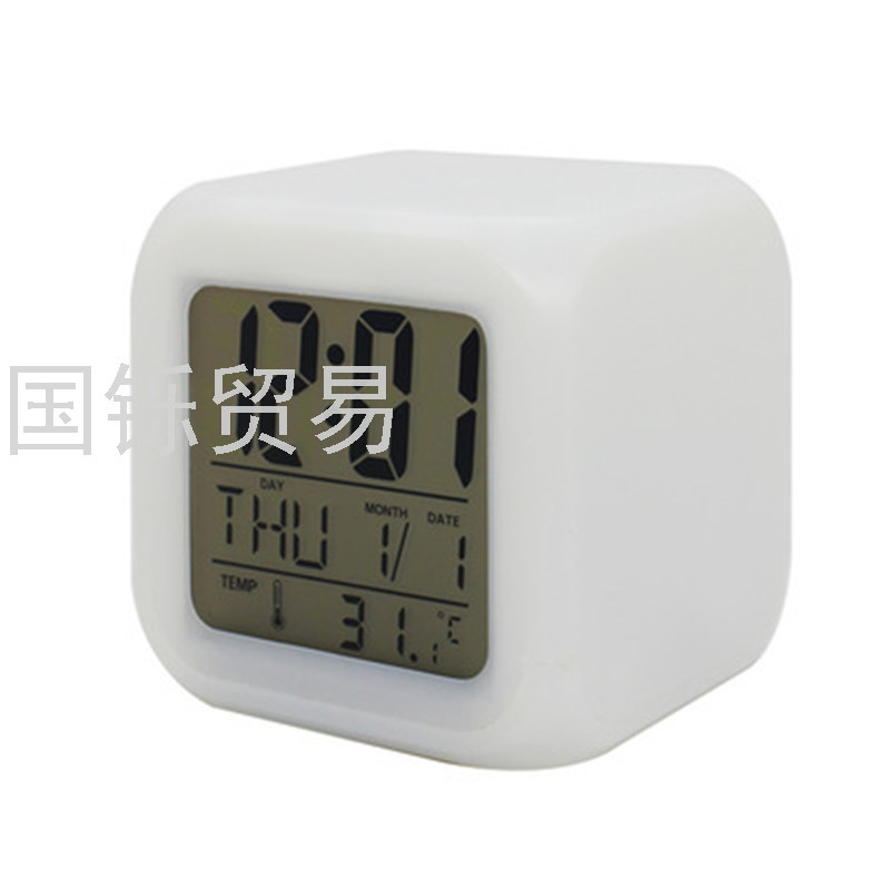 七彩变色四节四方钟 LED闹钟时钟静音床头学生起床电子万年历定制 投诉