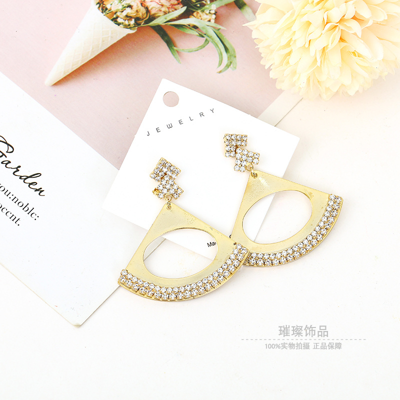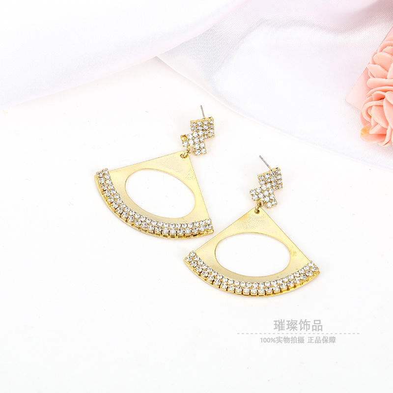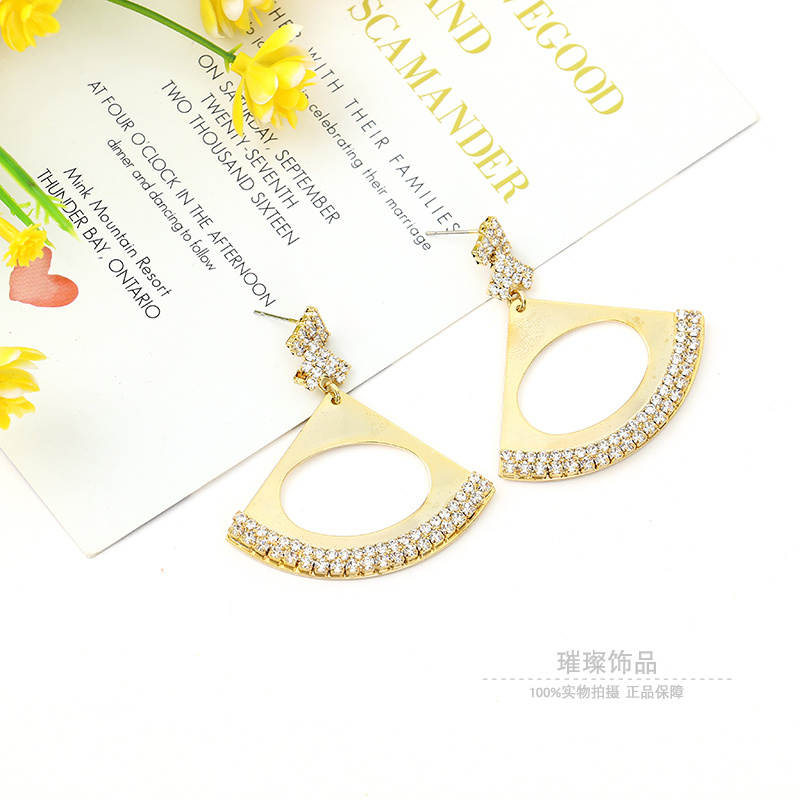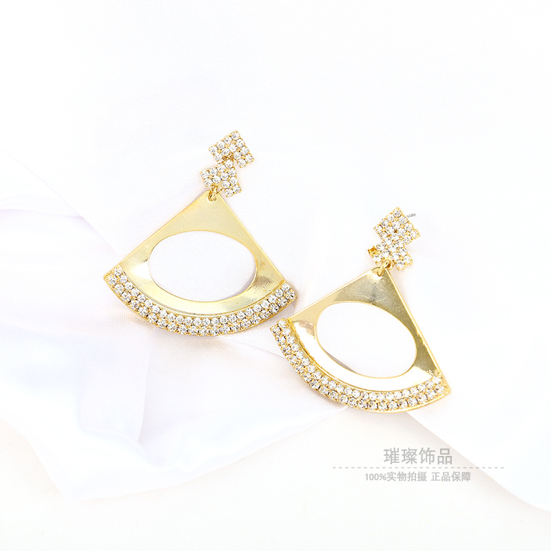 韩国新款纯银针珍锆石空扇形高级感耳环个性气质设计感耳饰耳钉女 English | 投诉
