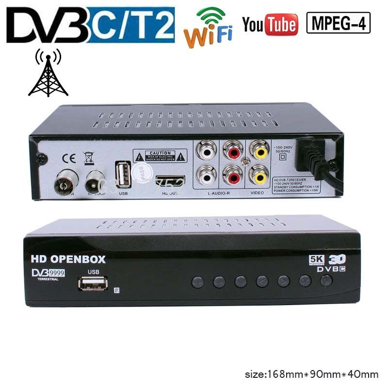 This is DVB-T2 DVB-T Digital television Standard-Terrestrial broadcasting, Please check if Could be used in your country!!!(Check DVB Map Photo) DVB-T/T2 can be used in:Europe,Australia,Africa,Middle East,South East Asian Support IPTV App(you need import your iptv m3u list to play iptv channel,we not sale IPTV Channel Server) If you want to used the Internet Function,please pay Tuner Wifi Optional; Video decoder: MPEG-2MP@HL/MPEG-4/H.264. Demodulation Terrisal Receiver Standard DVB-T/DVB-T2/C Input RF Frequency VHF:177.5~226.5 MHz:UHF 474~866MHz. Bandwidth 7MHz,8MHz USB Wi-Fi Dongle Require Ralink7601 Package includes:(USB Wifi Antenna was optional Pay) 1x DVB-T2 DVB-C TV BOX 1x RCA cable 1x Remote(Not including Battery)