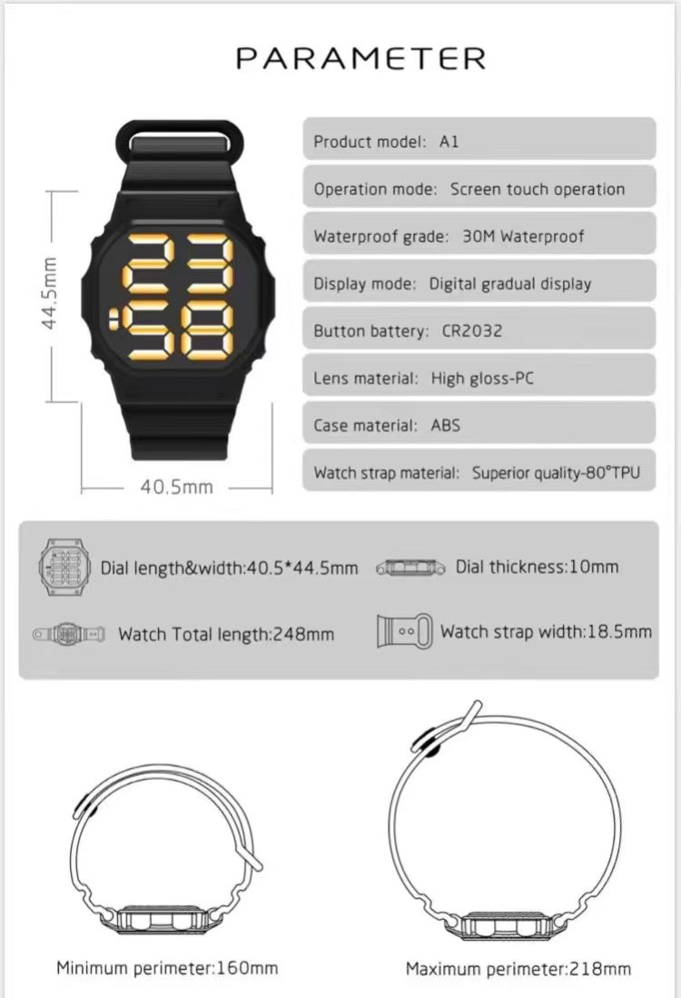 外贸跨境新款LED电子手表防水方形数字触屏情侣学生儿童时尚手腕 投诉