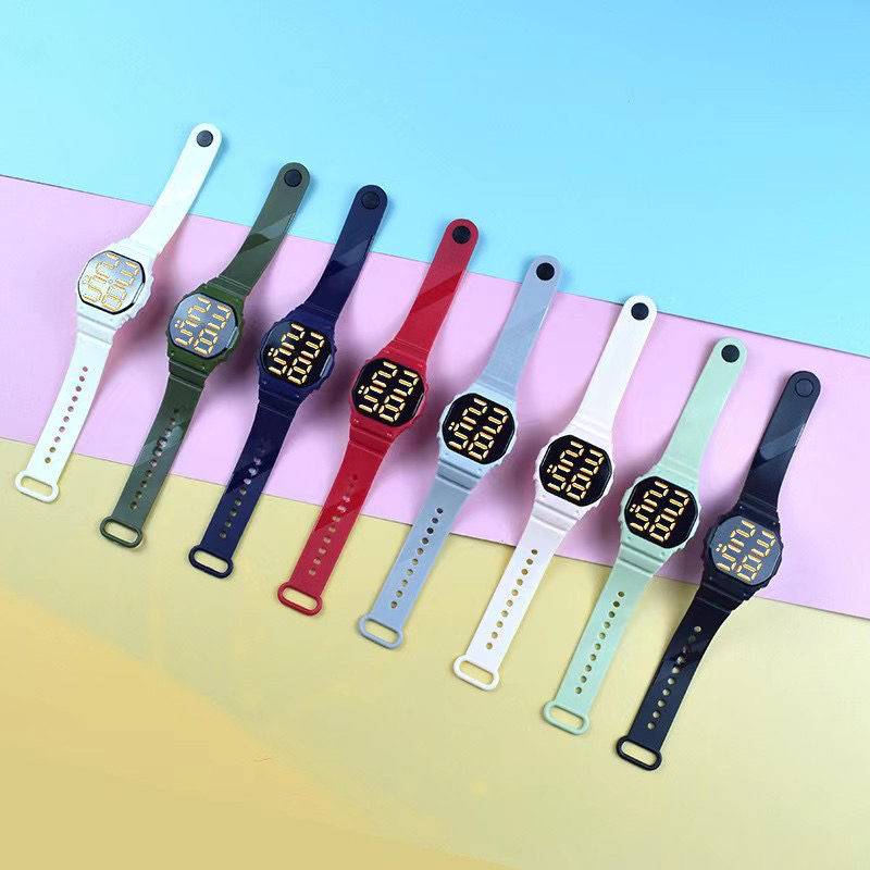 外贸跨境新款LED电子手表防水方形数字触屏情侣学生儿童时尚手腕