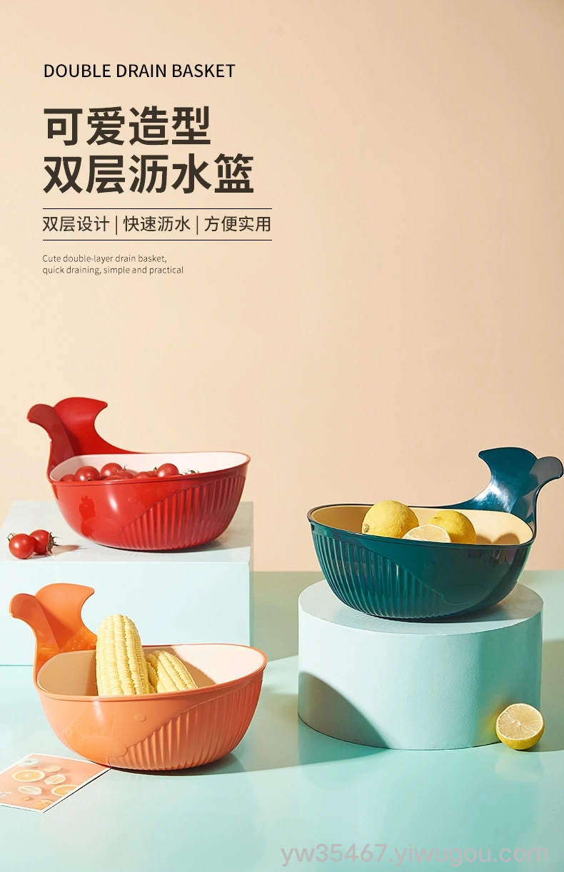 X22-6615创意鲸鱼果蔬收纳盘多功能洗菜盆镂空双层沥水篮 English | 投诉