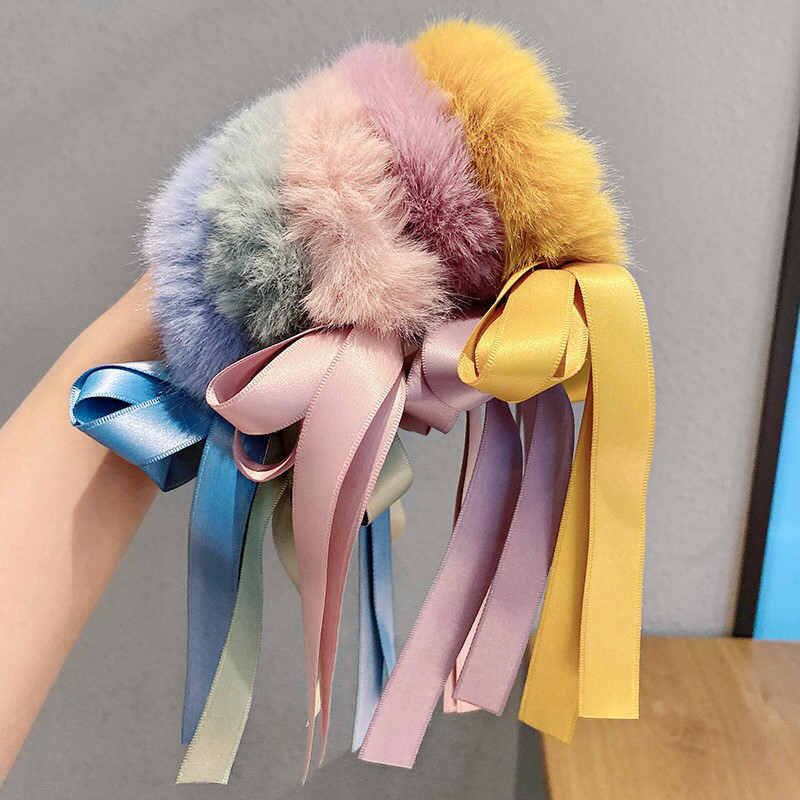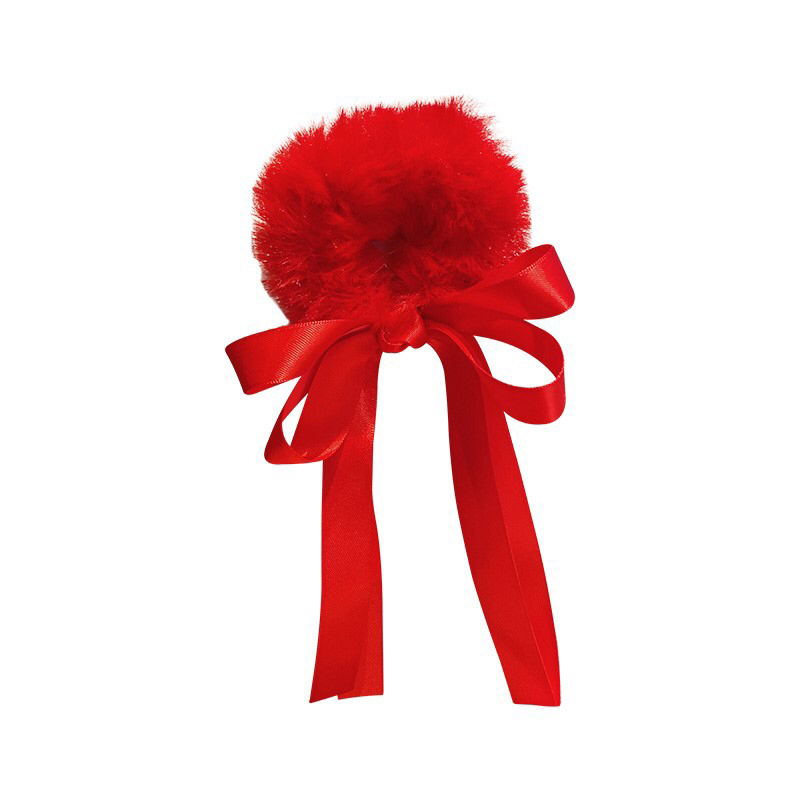儿童秋冬毛毛绒发圈流苏发饰蝴蝶结发绳丸子头饰品小女孩可爱头绳