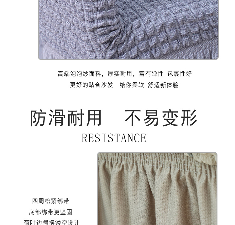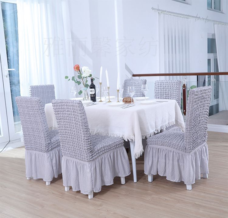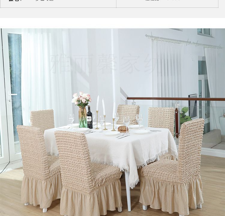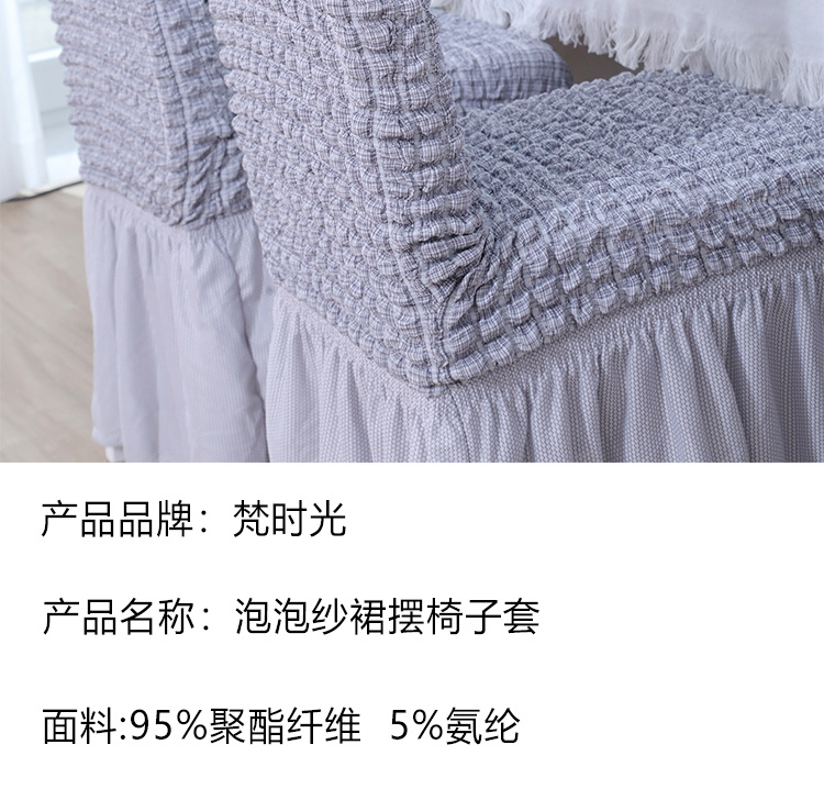 高端定制四面弹力仿麻泡泡布防滑椅子套带泡泡纱裙摆四季通用 投诉