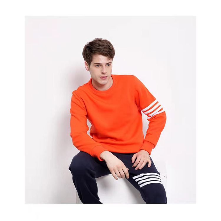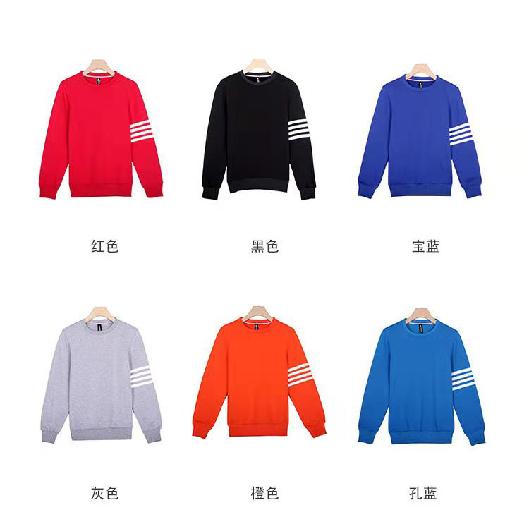 2021潮牌秋冬三条杠加绒纯色男女圆领卫衣定制团体工作服定制logo 投诉