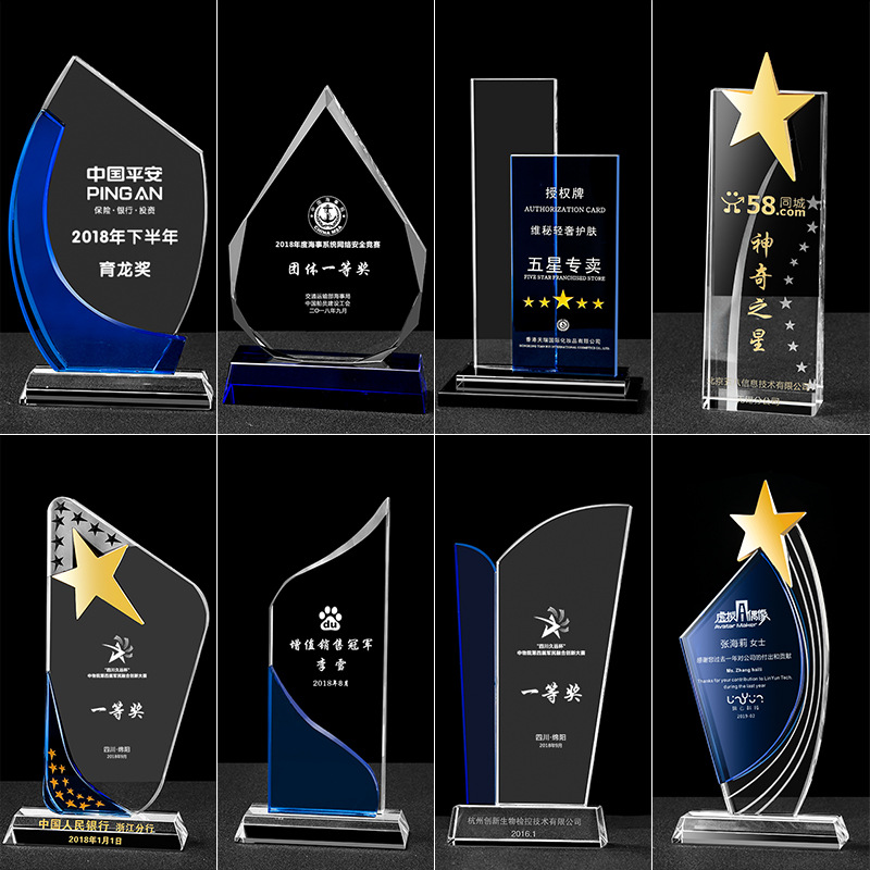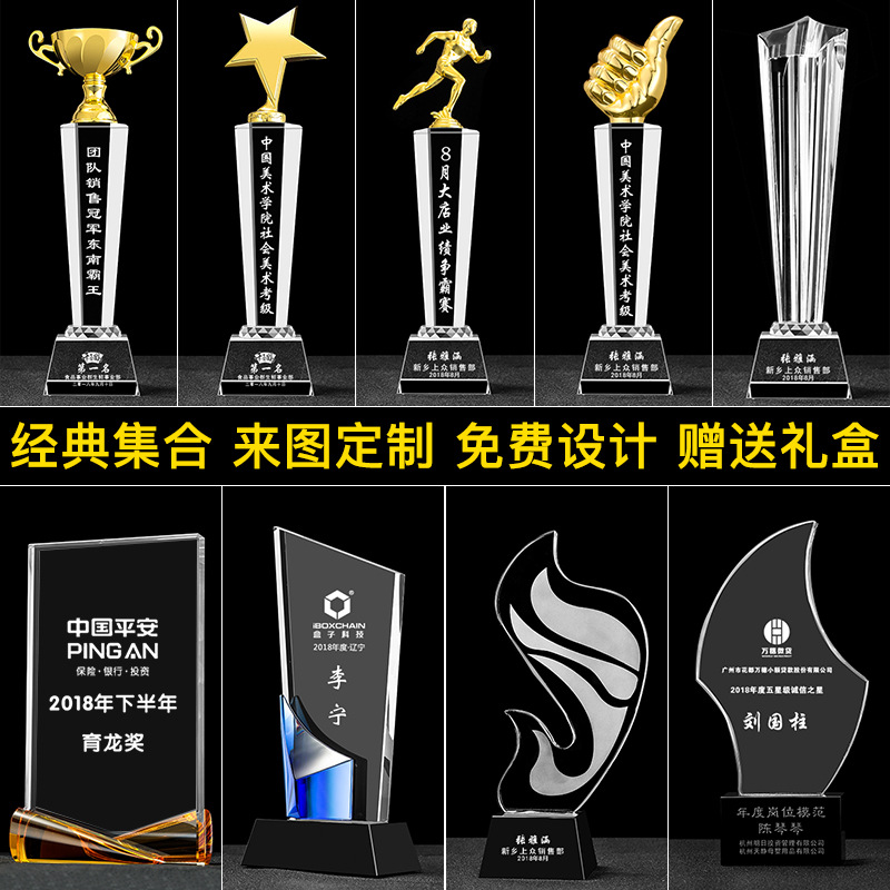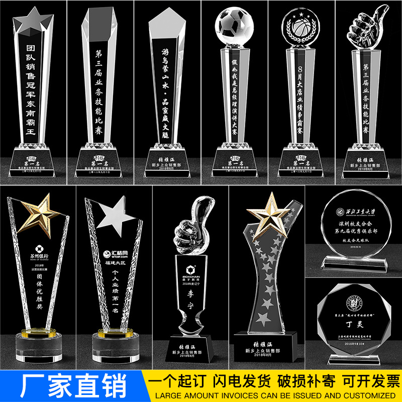 厂家批发水晶五角星奖杯创意金属奖杯定制纪念品免费刻字摆件奖杯