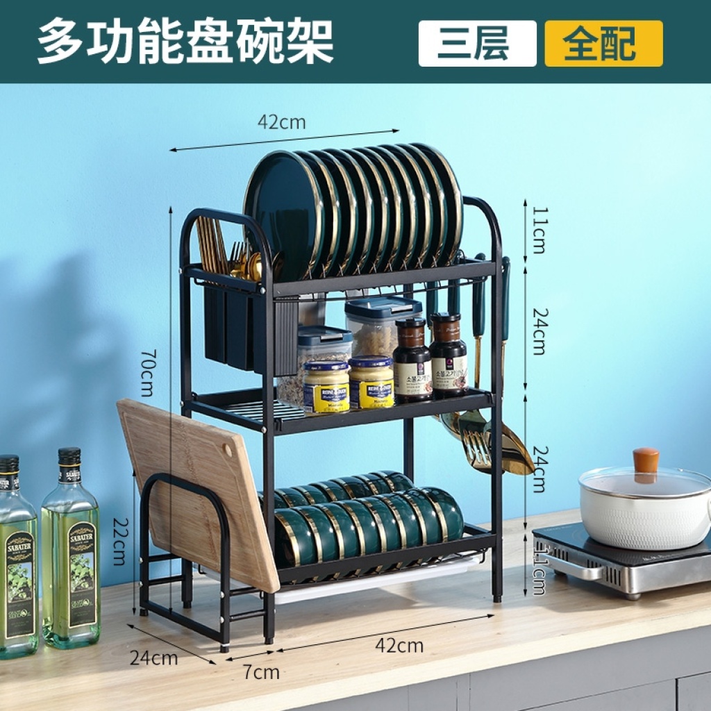 厨房置物架不锈钢碗碟收纳架碗筷盘刀收纳盒台面多层碗架沥水架子