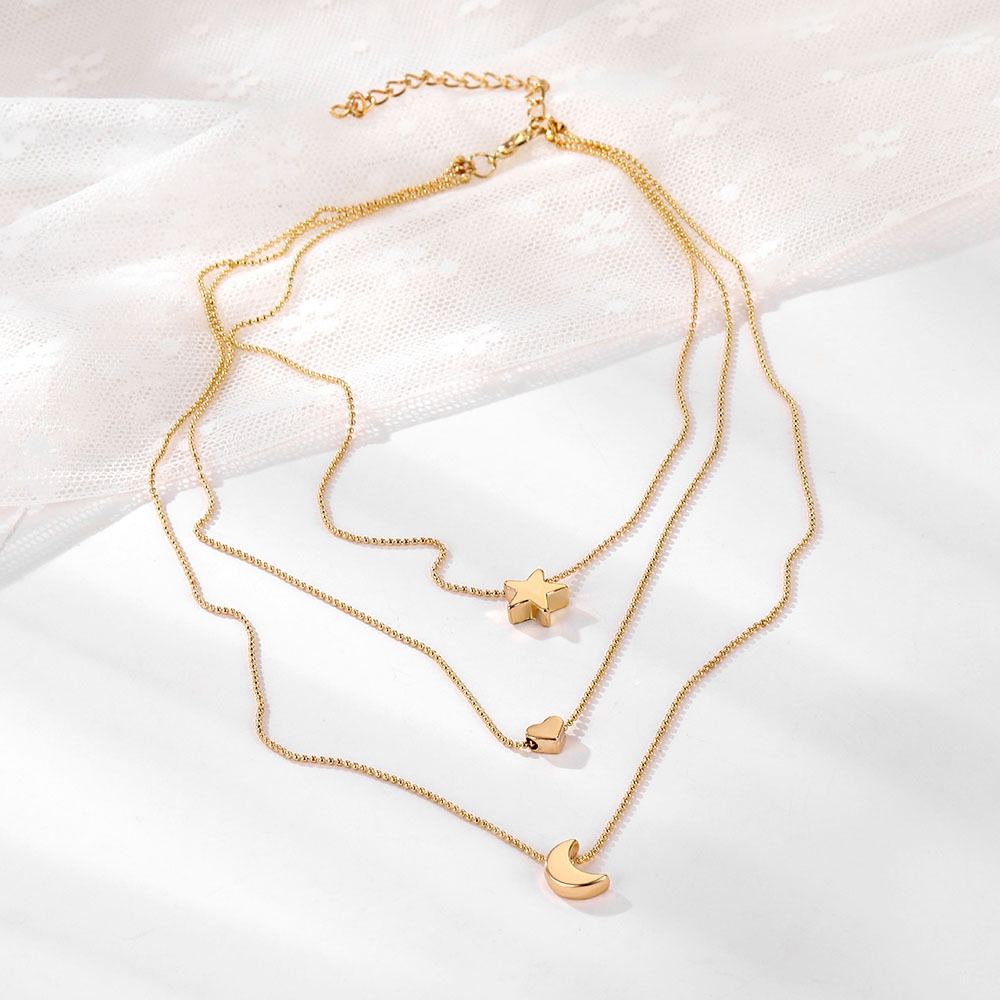 欧美跨境金色吊坠锁骨链 复古简约星星月亮爱心吊坠项链1 English | 投诉