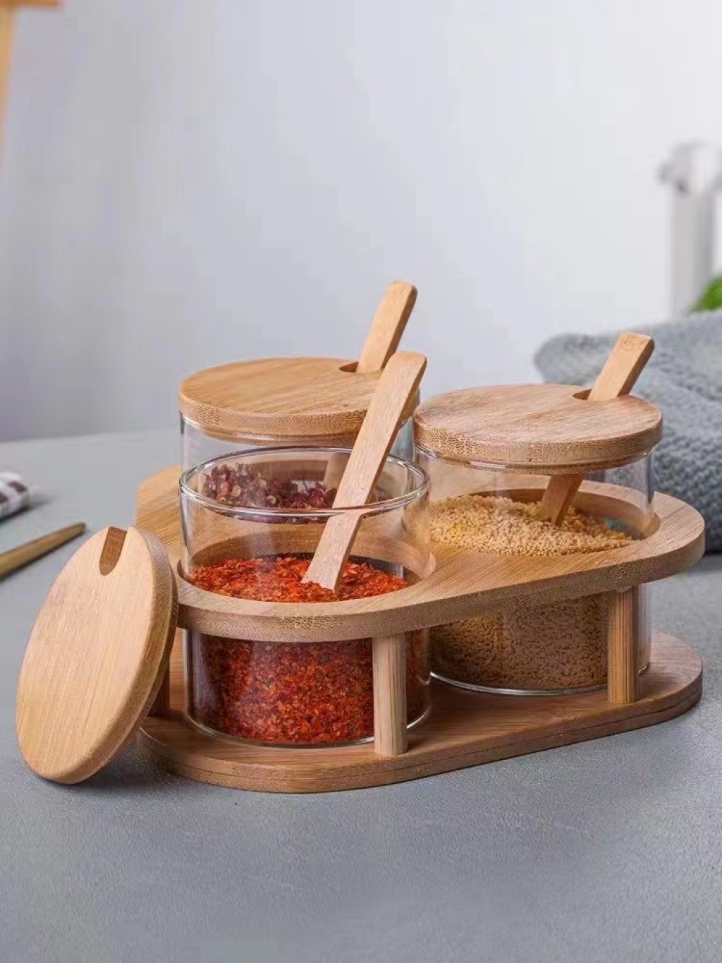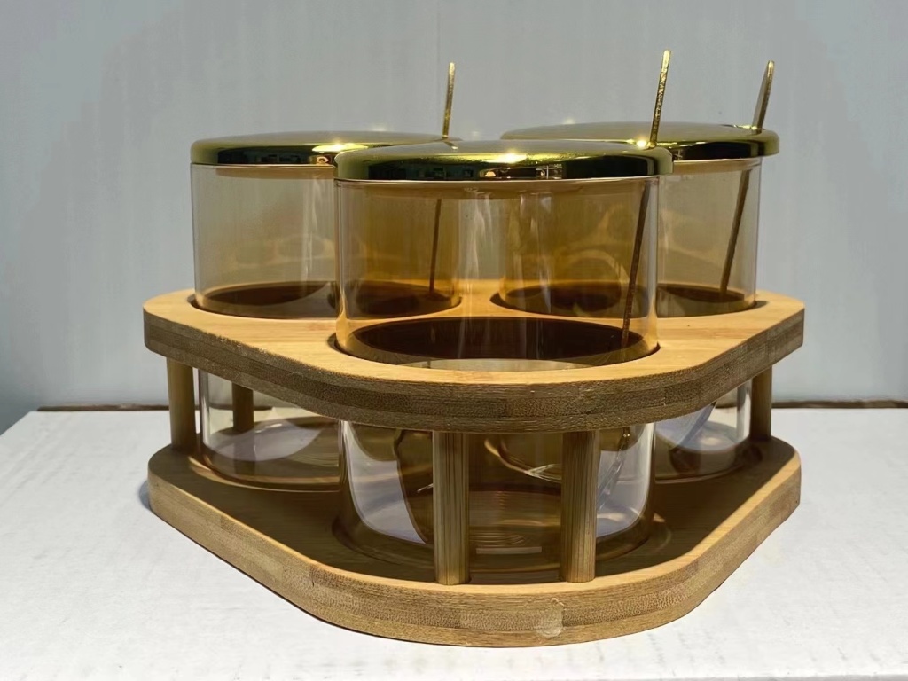 高硼玻璃调味瓶套装带木架