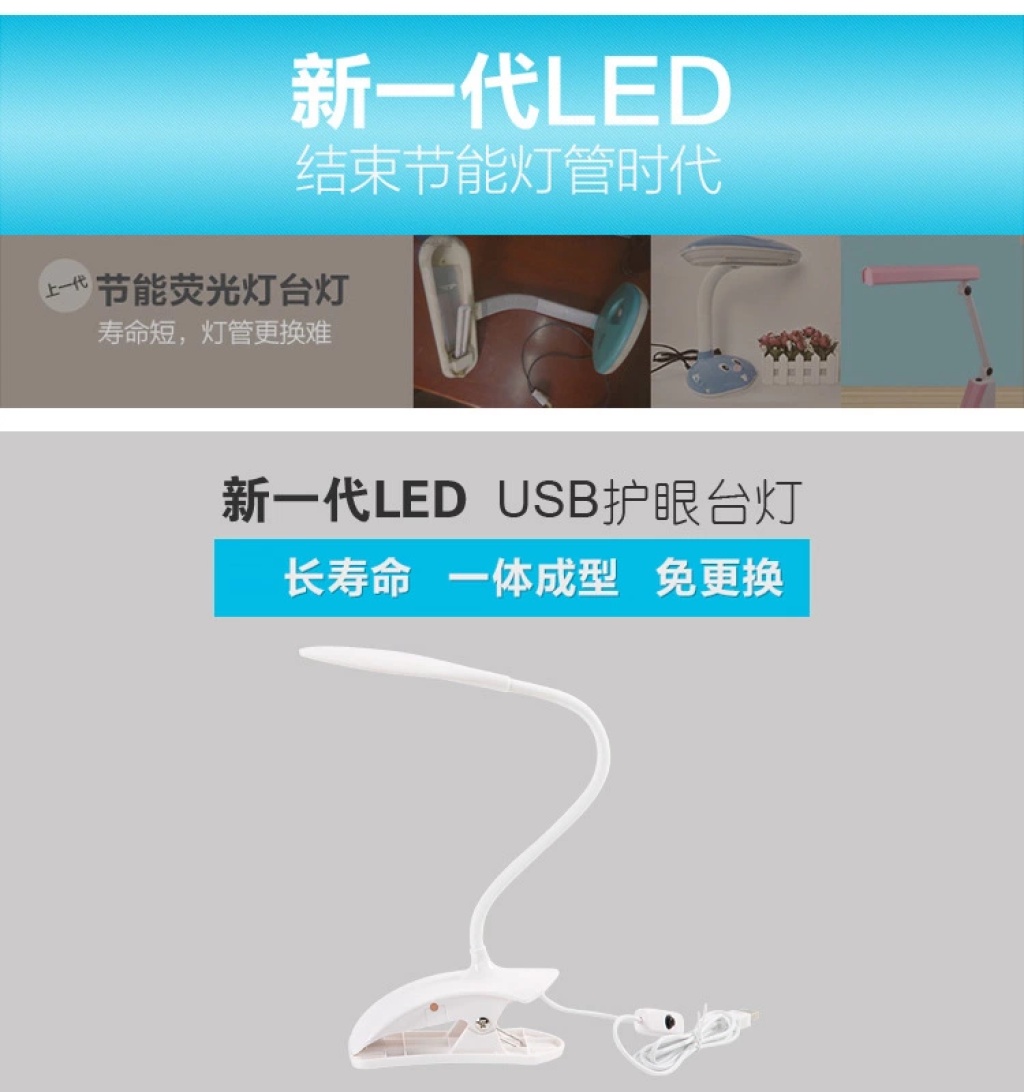 新款led台灯创意夹子书灯卧室床头灯儿童护眼学习台灯 礼品热销 h