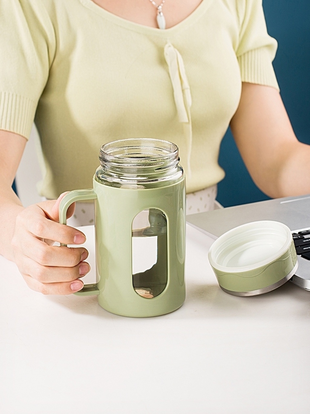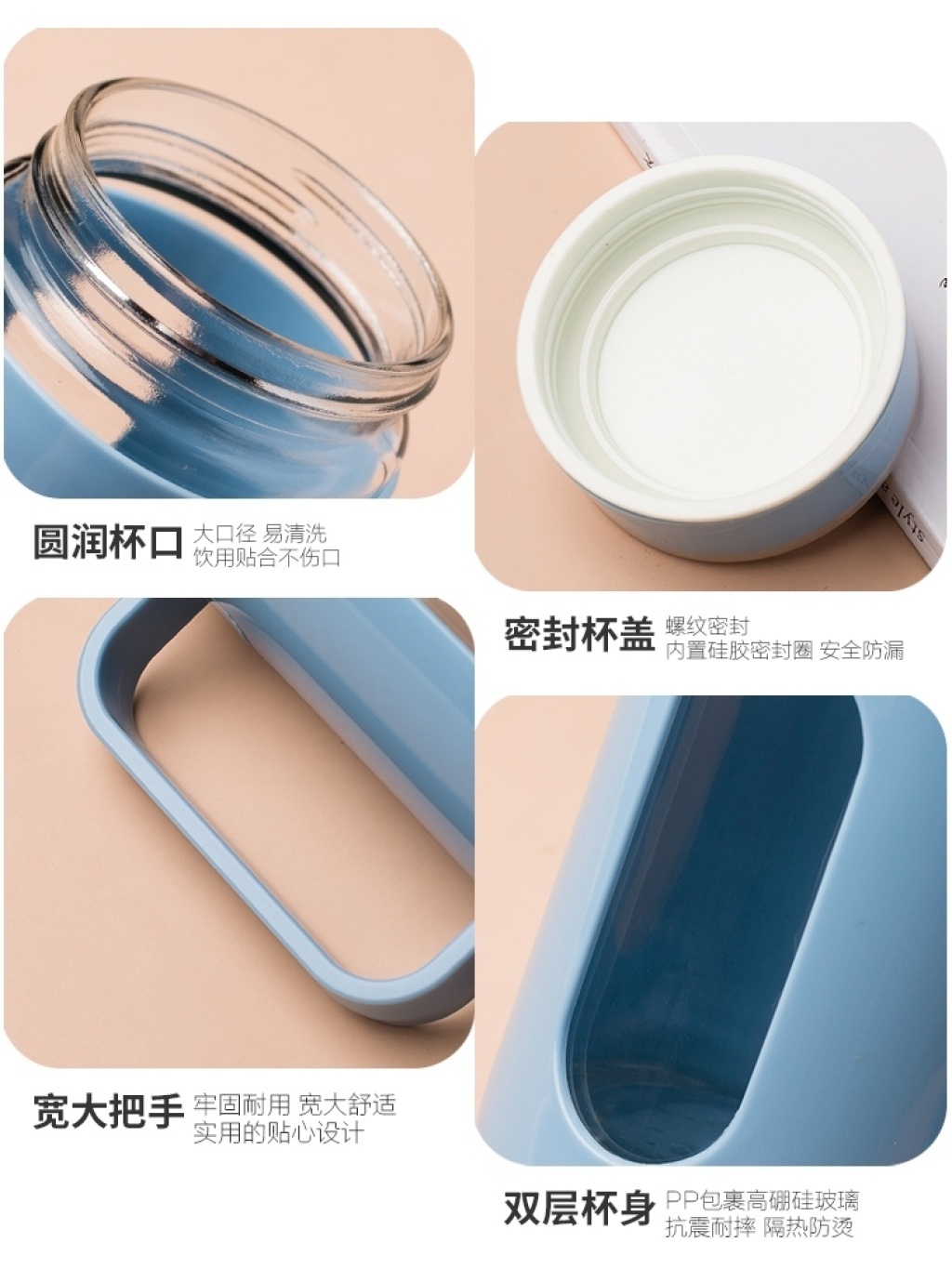 单层塑玻杯高颜值网红水杯带盖大容量男生个人专用茶杯带把手杯子 投诉