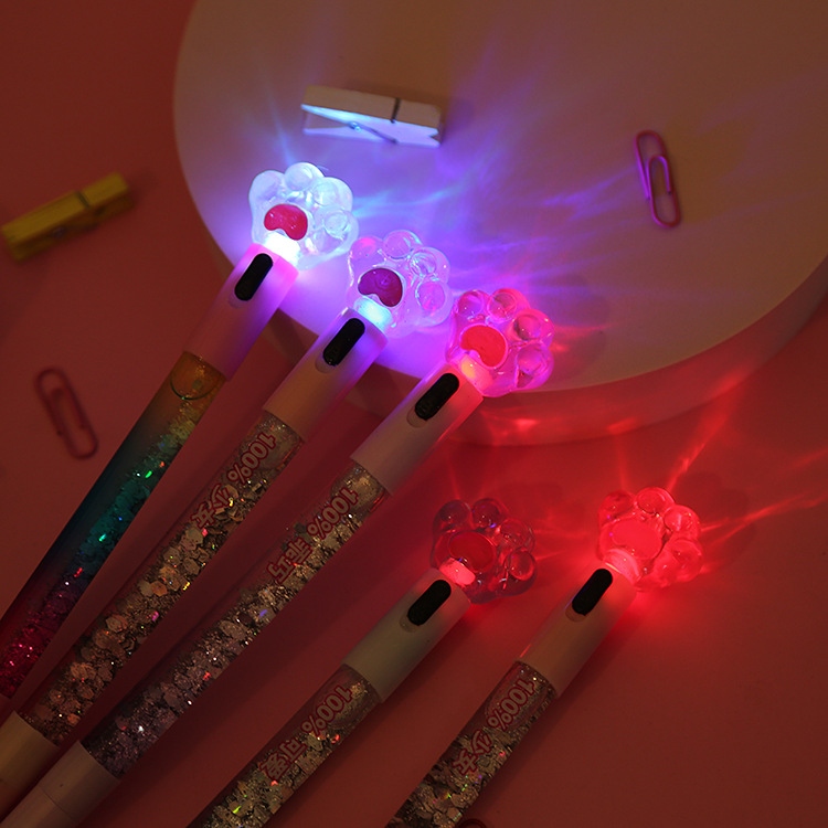 水晶熊掌带灯入油流沙中性笔学生亮片仙女棒水笔创意办公文具批发 English | 投诉