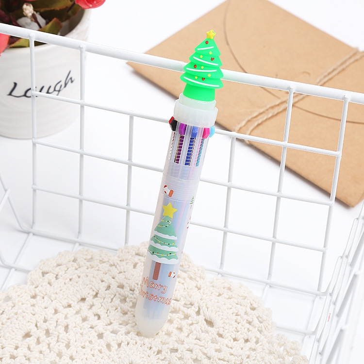 圣诞卡通十色圆珠笔 可爱学生节日奖品礼物彩色笔ins手账笔多色圆