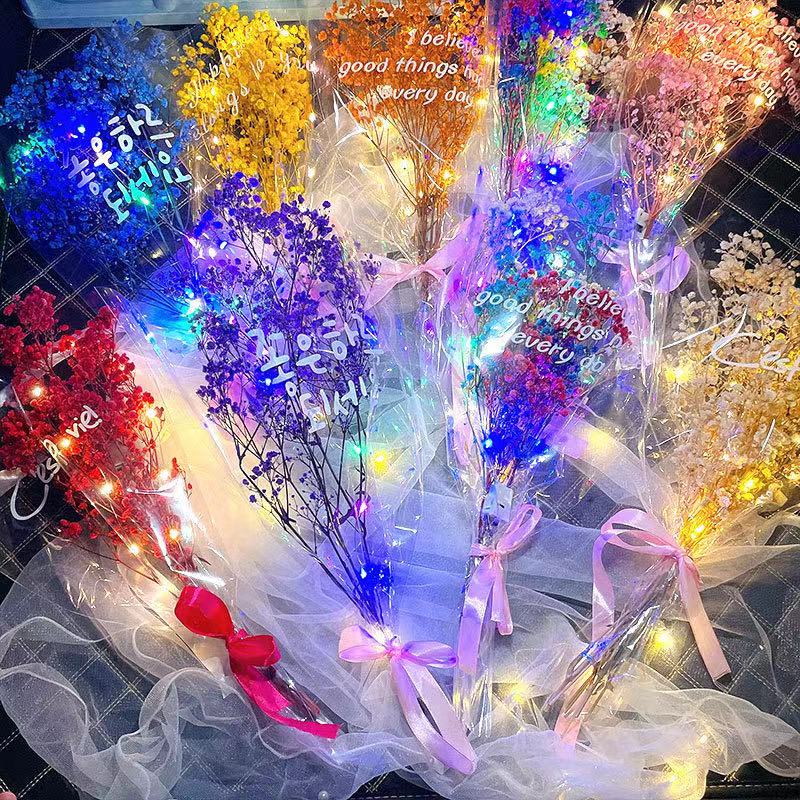 热销教师节等节日女生生日礼物带灯发光满天星干花束礼品