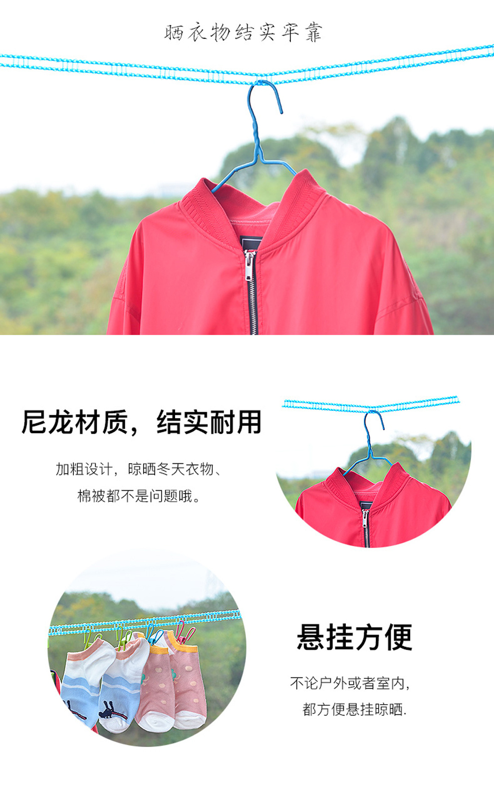 产品名称:户外旅游加粗晒衣绳晾衣绳旅行防风衣服晾晒挂衣绳晒被绳防滑绳子