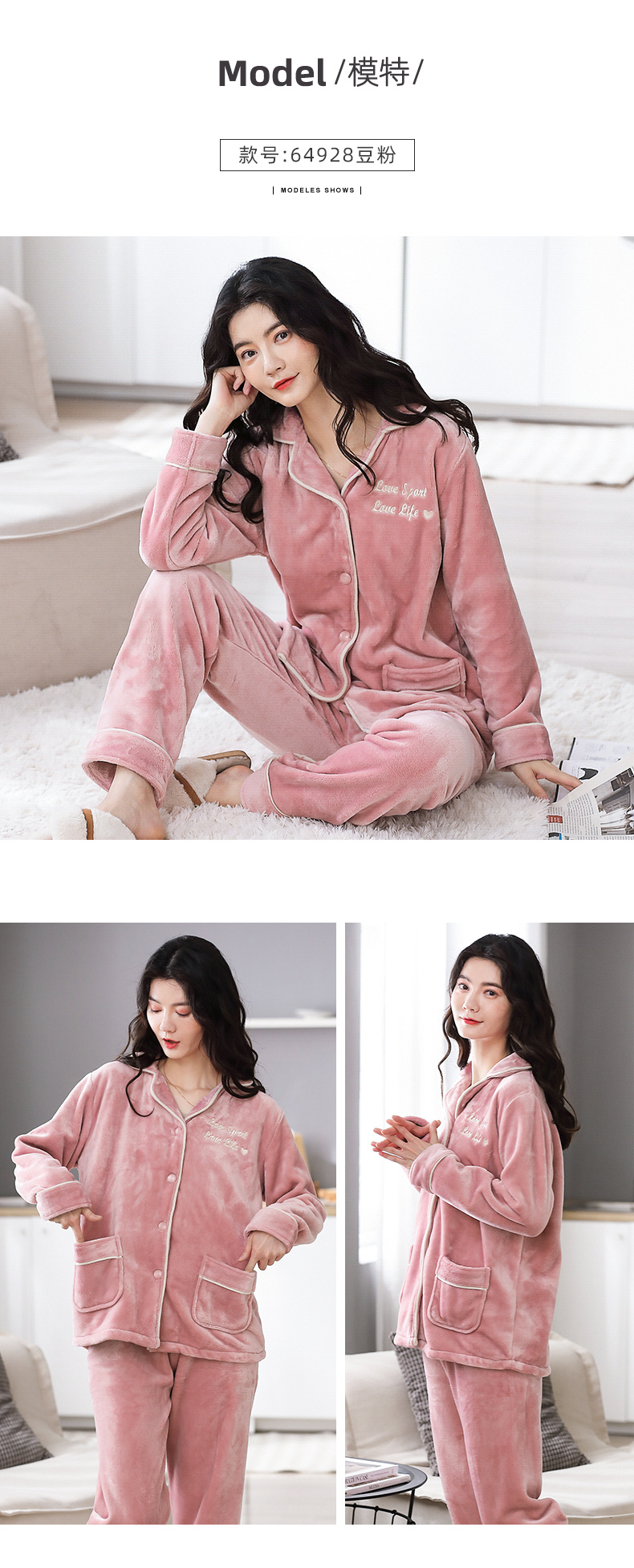 睡衣女冬季珊瑚绒加厚加绒圆领套头秋冬保暖法兰绒大码家居服套装 投诉