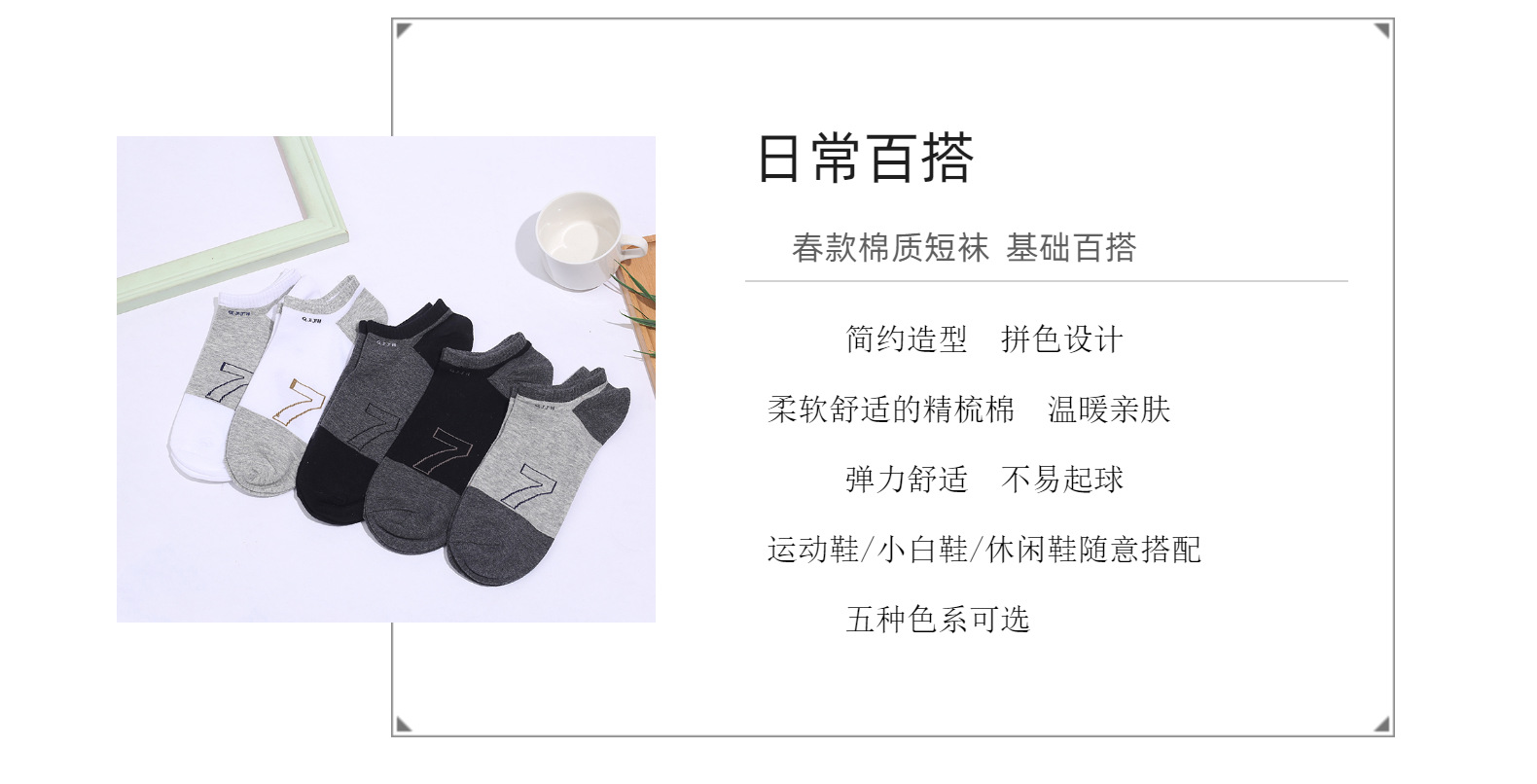 袜子男春夏短筒袜百搭弹力袜纯色精梳棉数字拼色吸汗透气防臭船袜 投诉