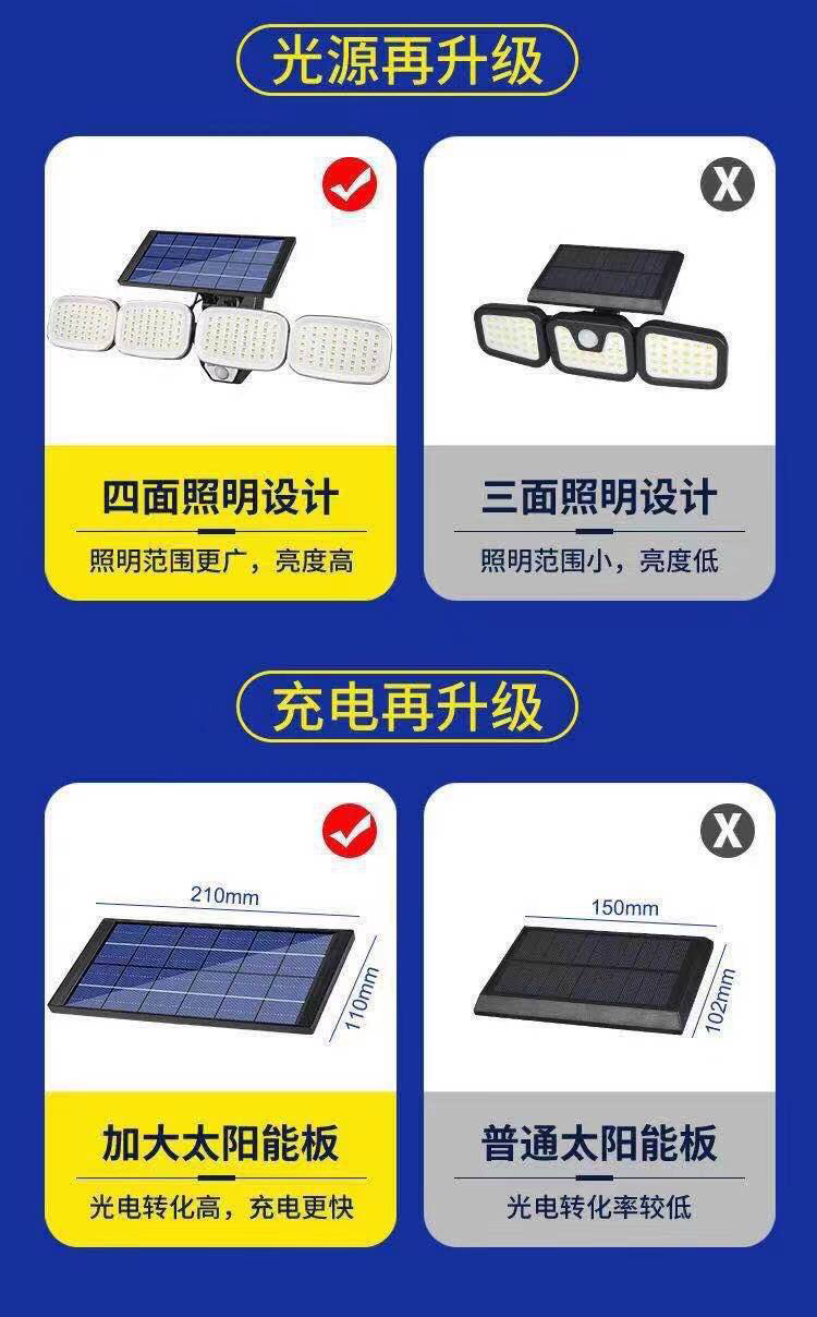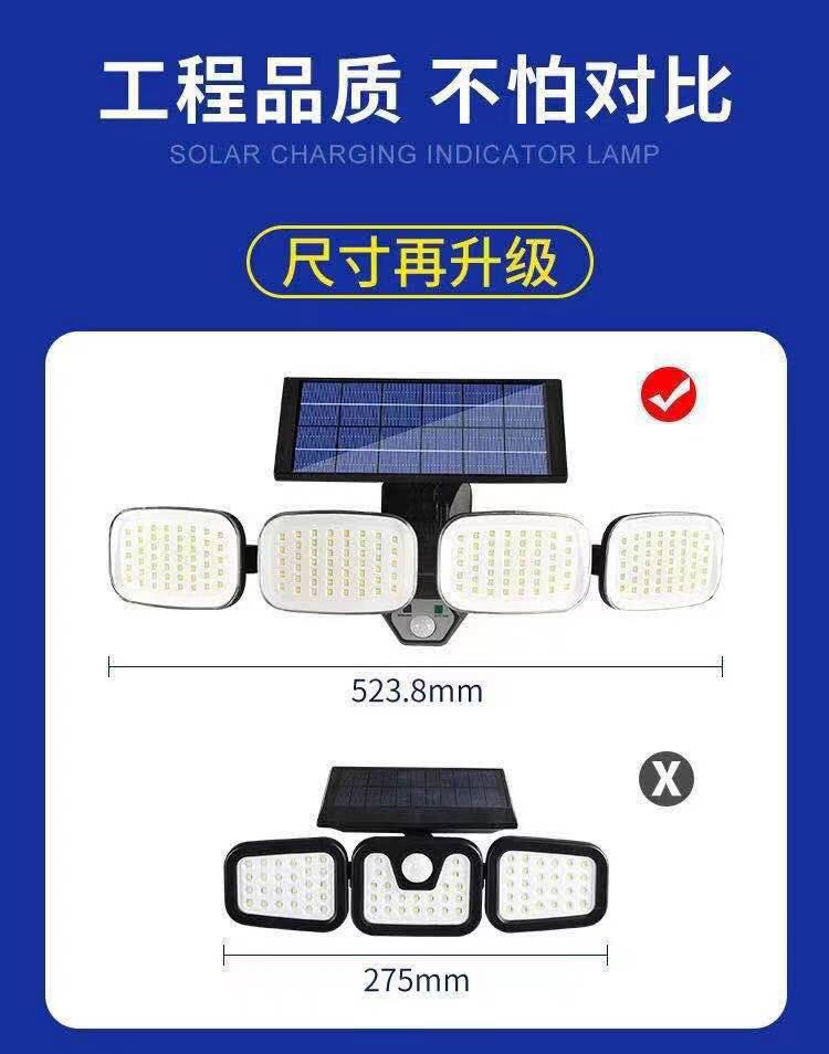 厂家现货跨境新款太阳能户外人体感应庭院路灯200LED车库壁灯 htt