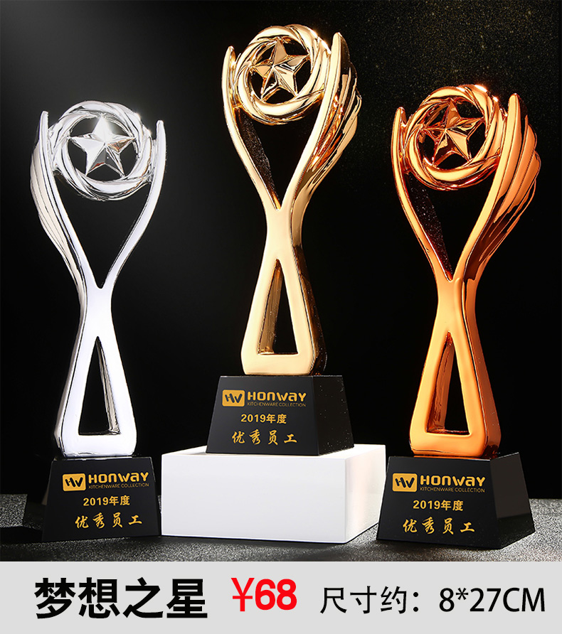 奖杯定制定做五角星大拇指优秀员工金属树脂创意足球篮球水晶奖杯
