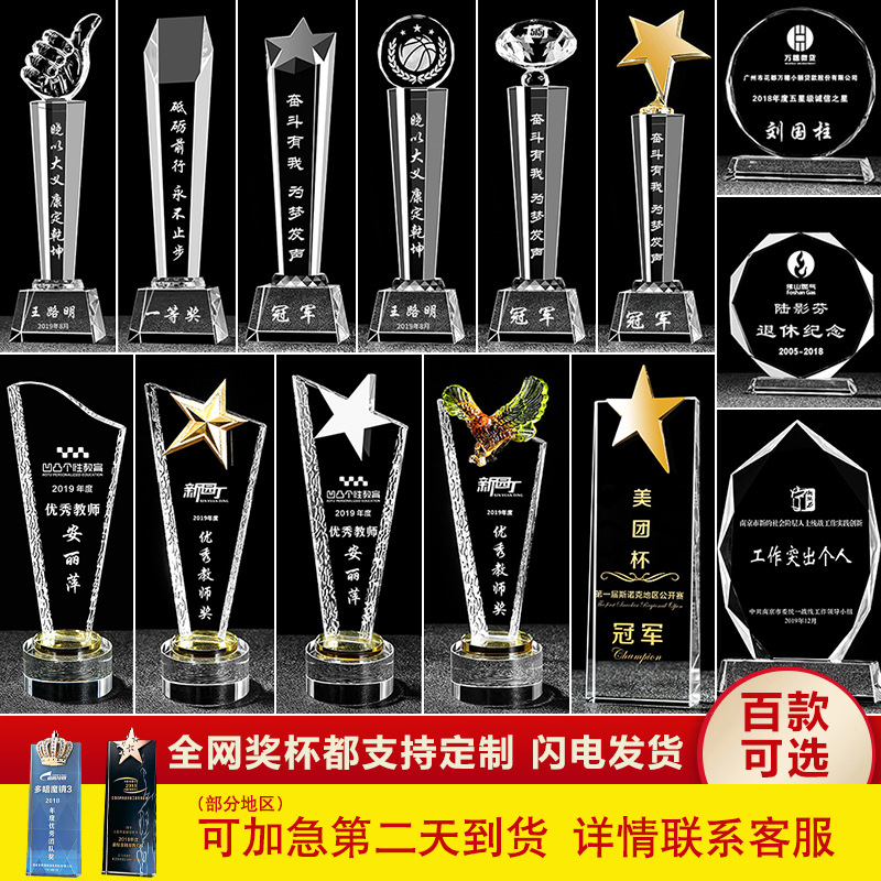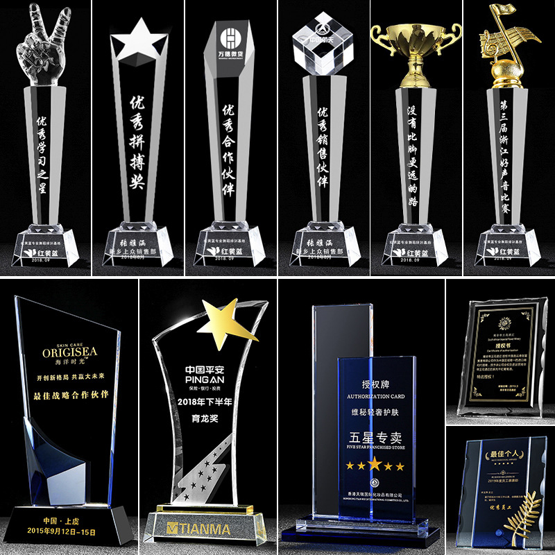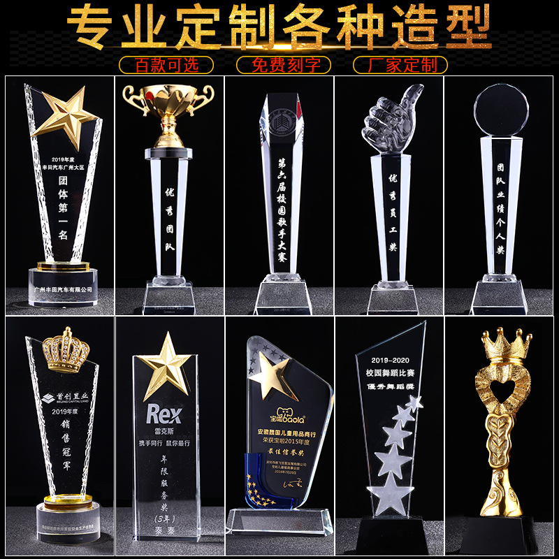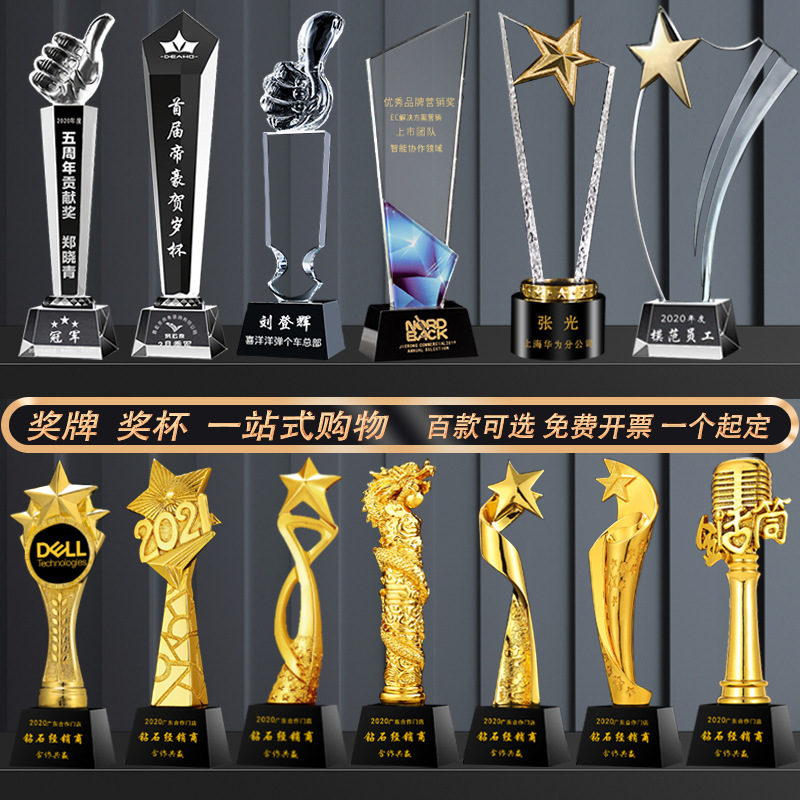 奖杯定制创意树脂五角星篮足球皇冠牛年音乐水晶奖牌定做公司颁奖