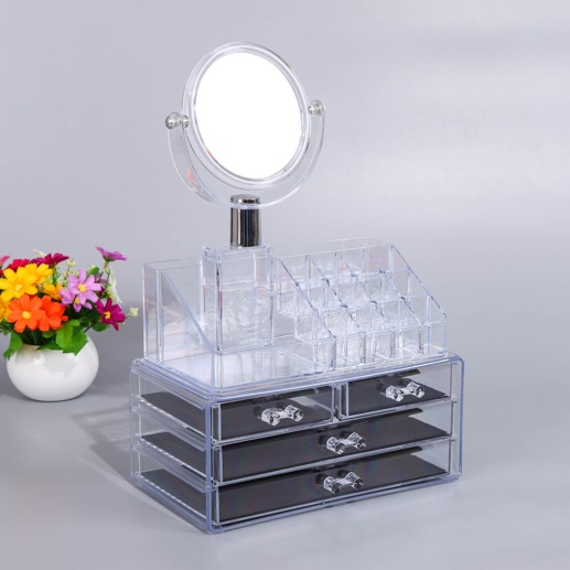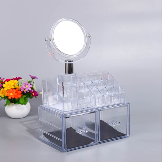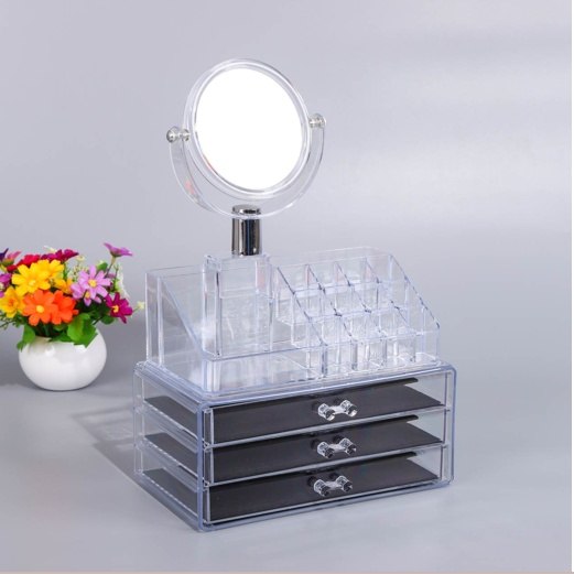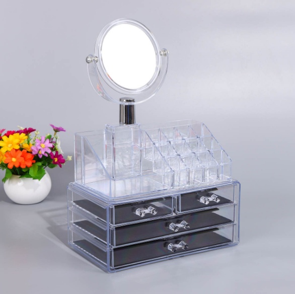 带镜子化妆品透明抽屉式桌面收纳架