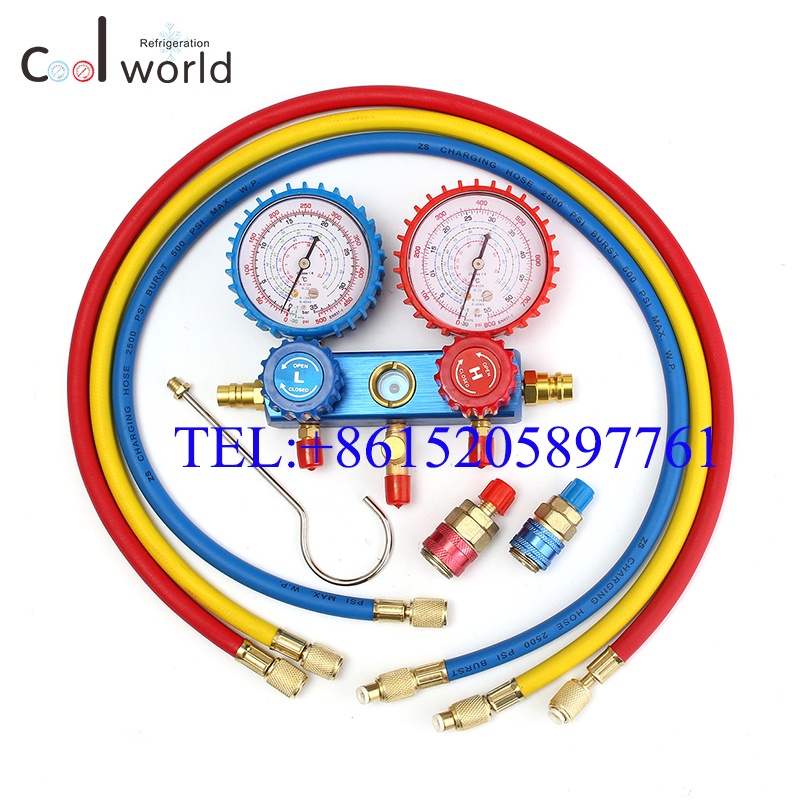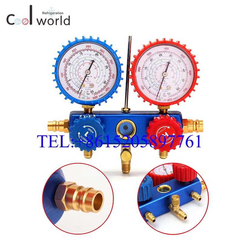R134a R410冷媒双表阀加液表 空调加氟压力表 汽车家用空调压力表