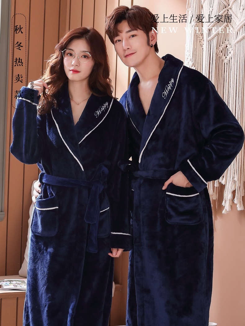 秋冬季睡袍女冬加厚加长款晨袍法兰绒情侣睡衣浴袍男士珊瑚绒浴衣 投诉
