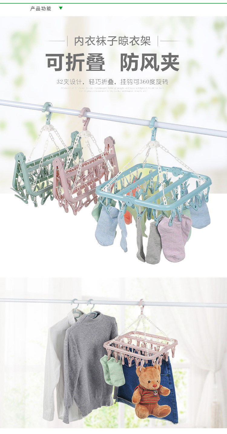 32夹家用多功能衣架儿童晒袜子夹晾衣架多夹子可折叠婴儿圆盘收纳 投诉