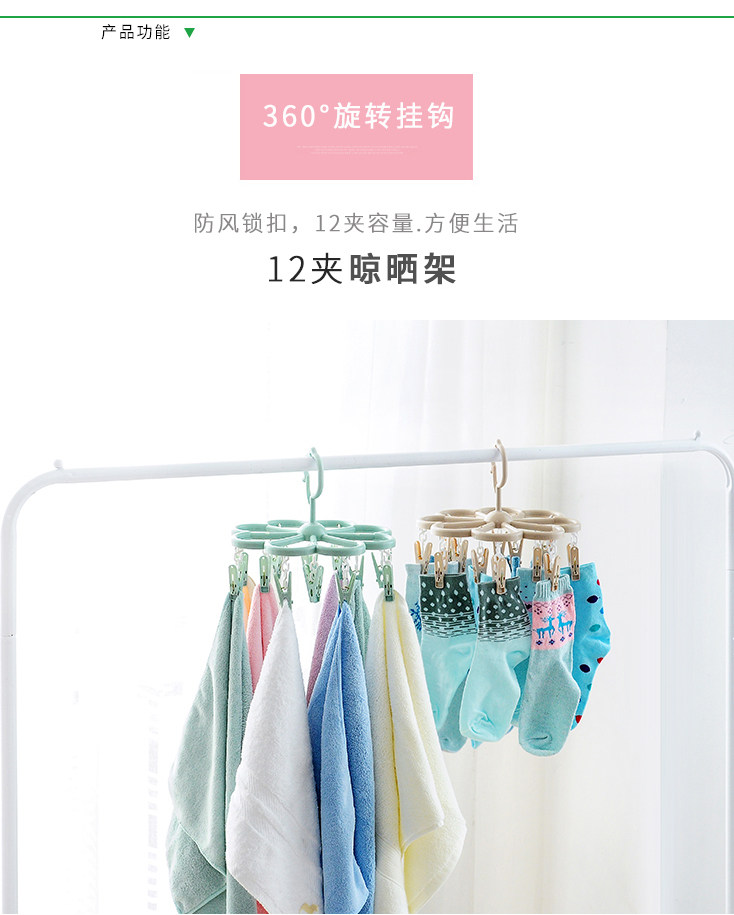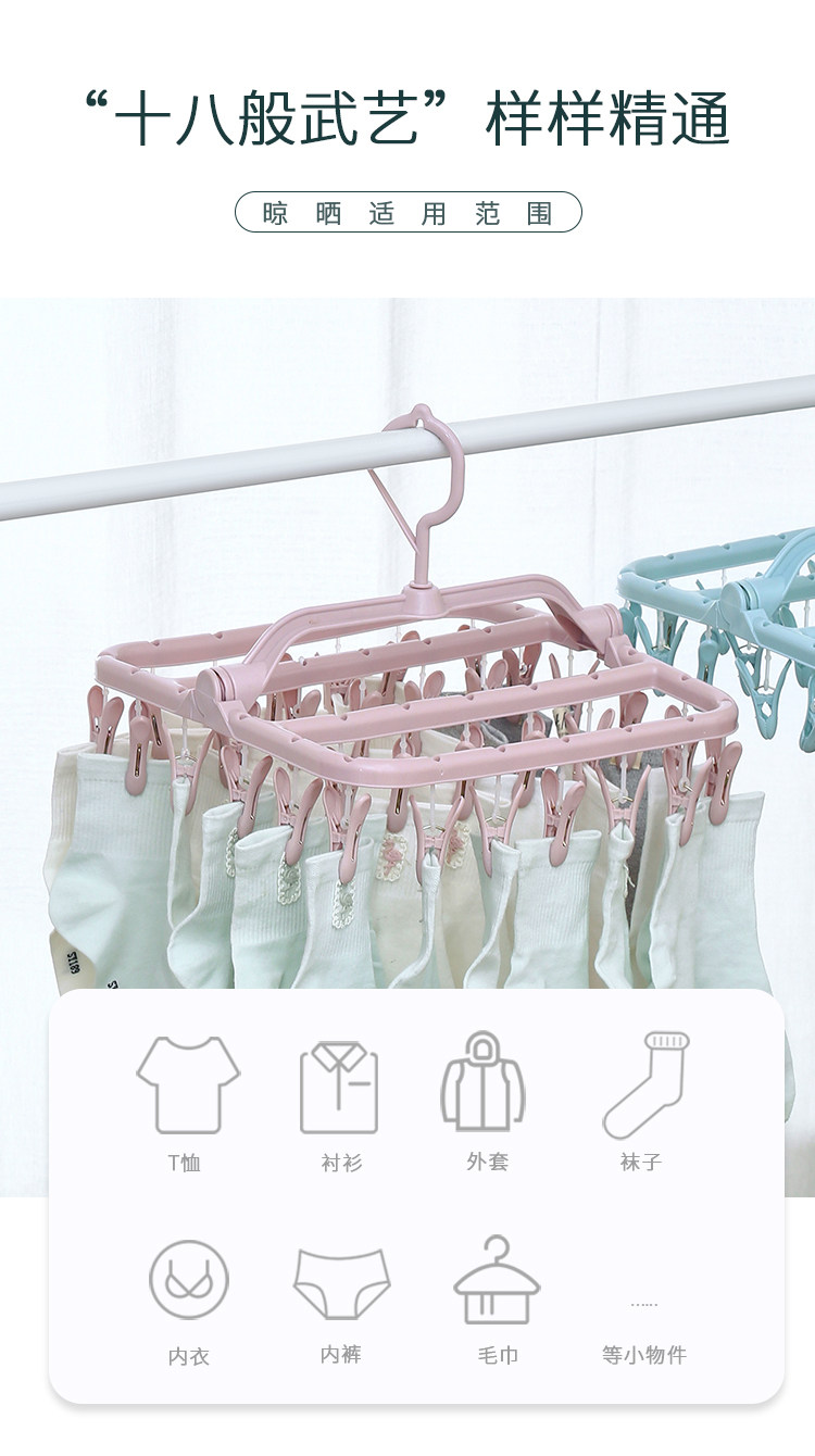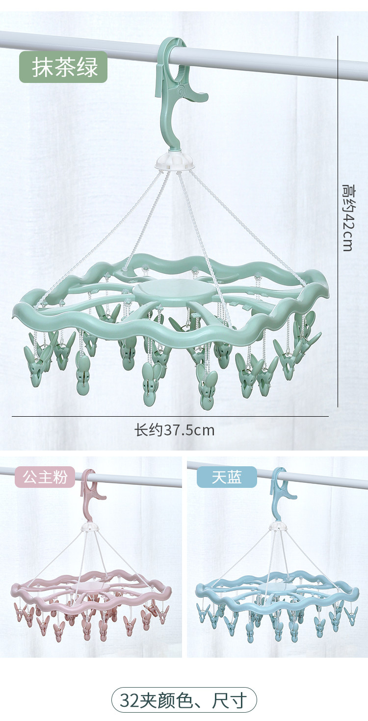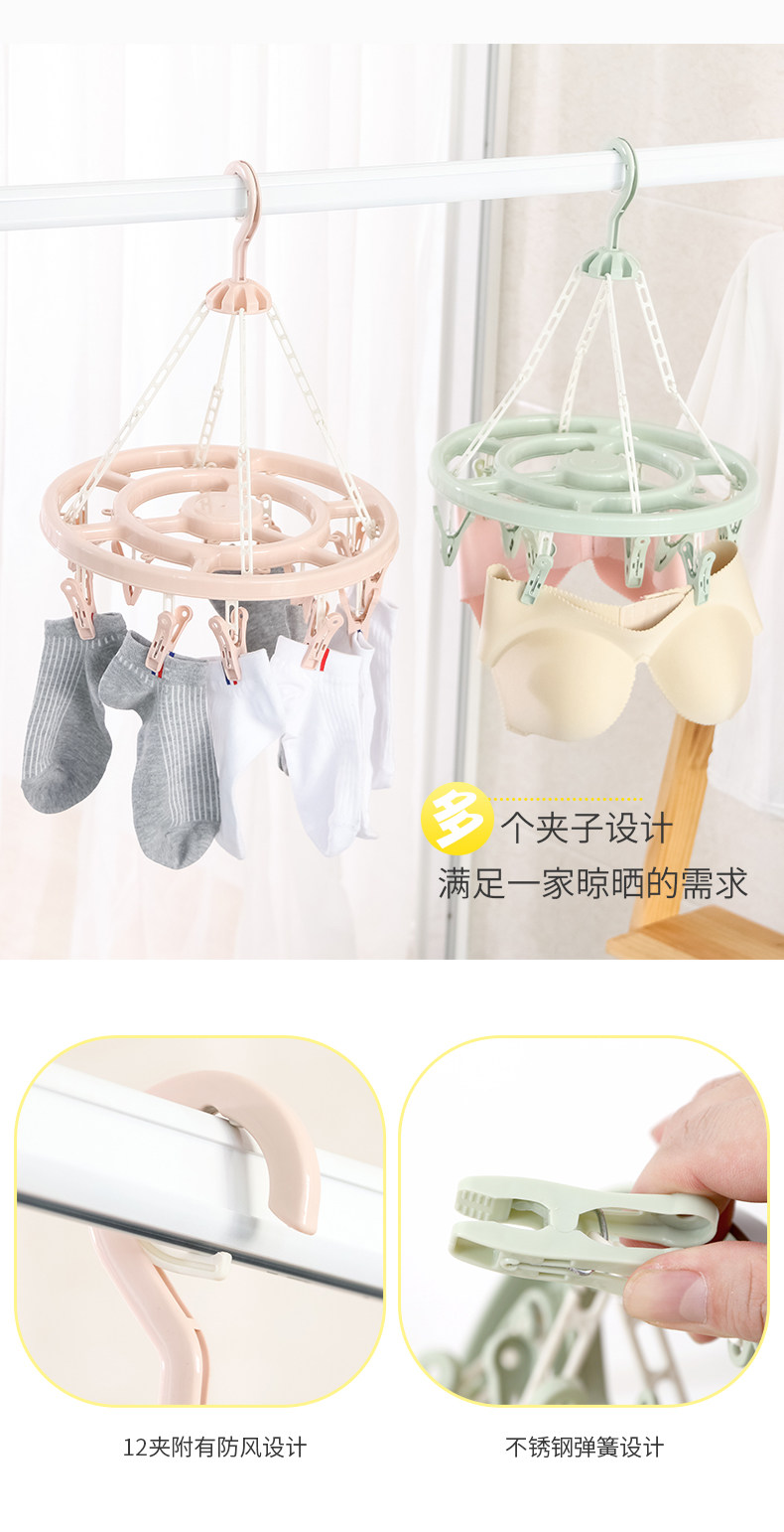 32夹家用多功能衣架儿童晒袜子夹晾衣架多夹子可折叠婴儿圆盘收纳