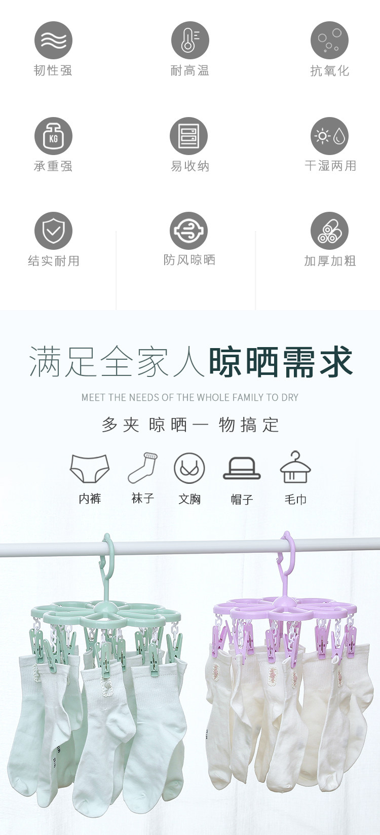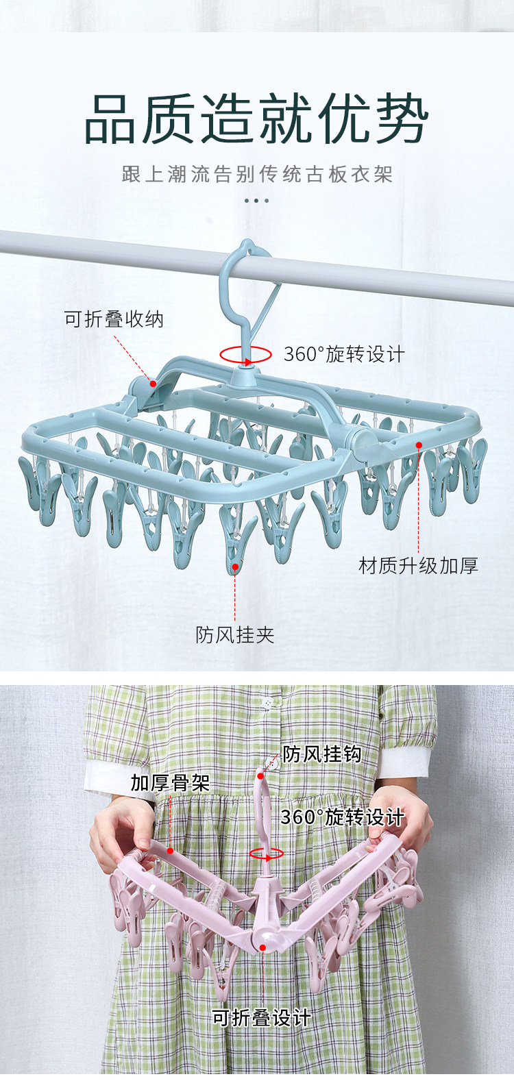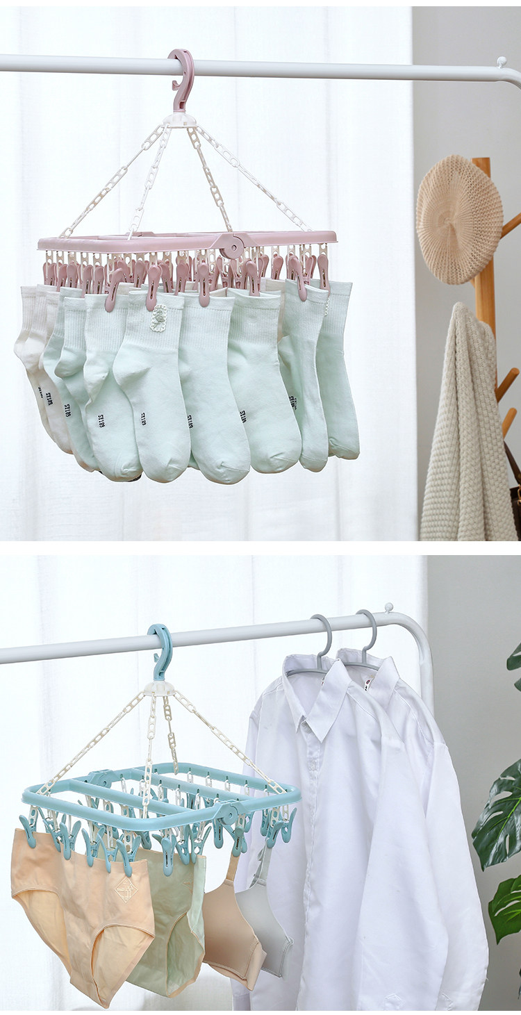 32夹家用多功能衣架儿童晒袜子夹晾衣架多夹子可折叠婴儿圆盘收纳