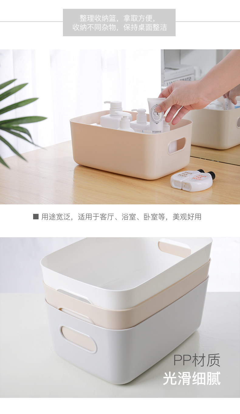 杂物收纳筐学生桌面零食储物盒塑料化妆品收纳盒家用厨房整理盒子