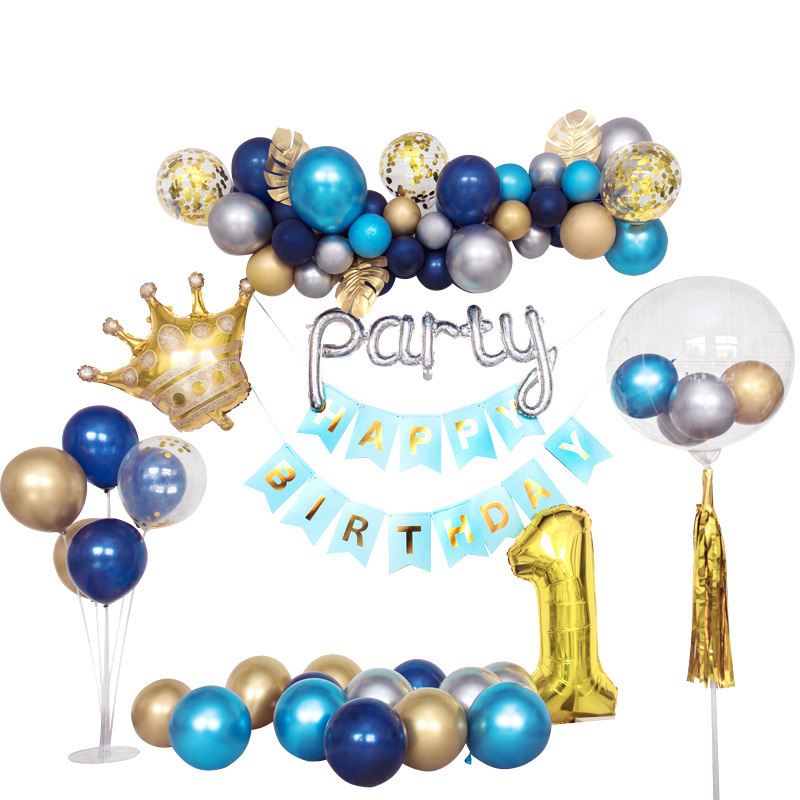 跨境儿童宝宝周岁生日PARTY布置蓝色星空主题乳胶气球套装批发