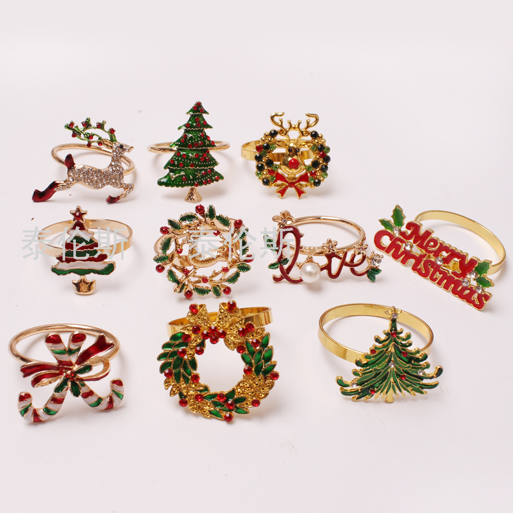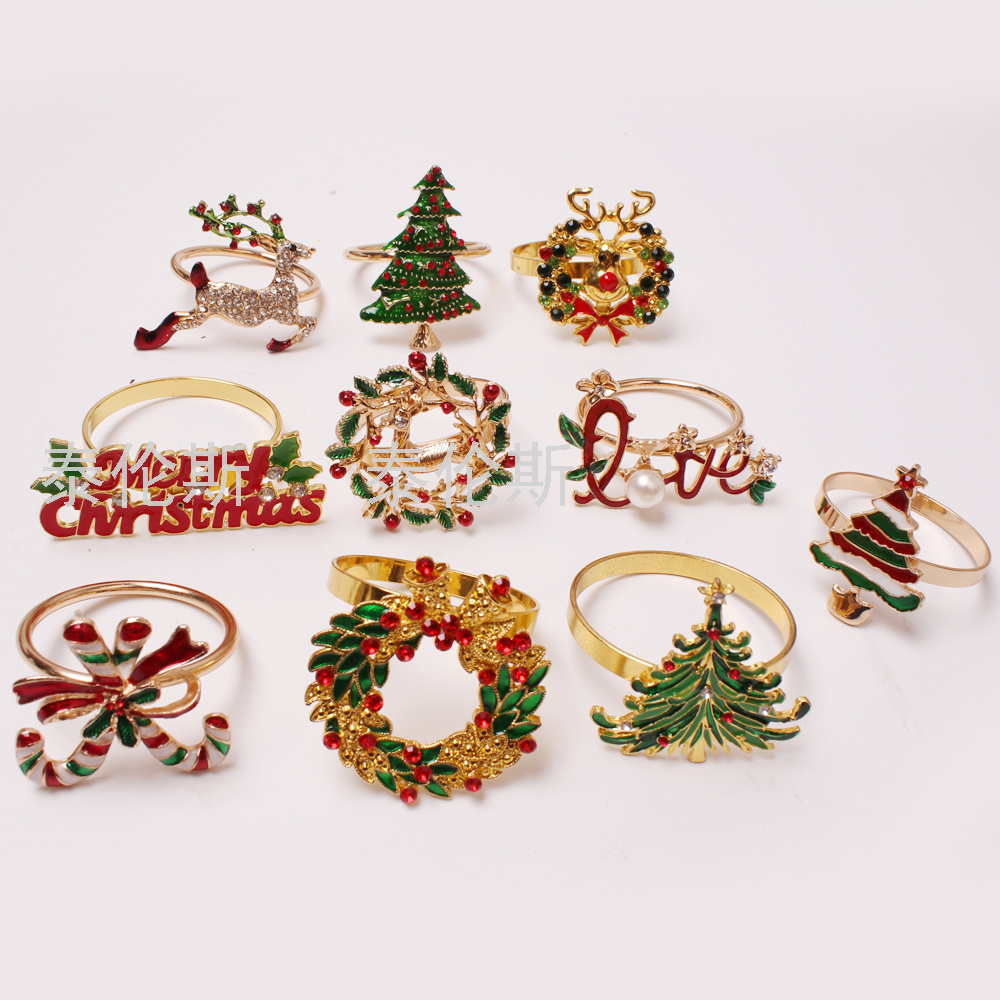 新款圣诞节雪人餐巾环 鹿头餐巾圈 圣诞树餐巾扣 花环纸巾环