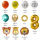 红色西瓜纹3个、黄色脚印2个、白色西瓜纹1个、白色脚印1个、一卷胶带