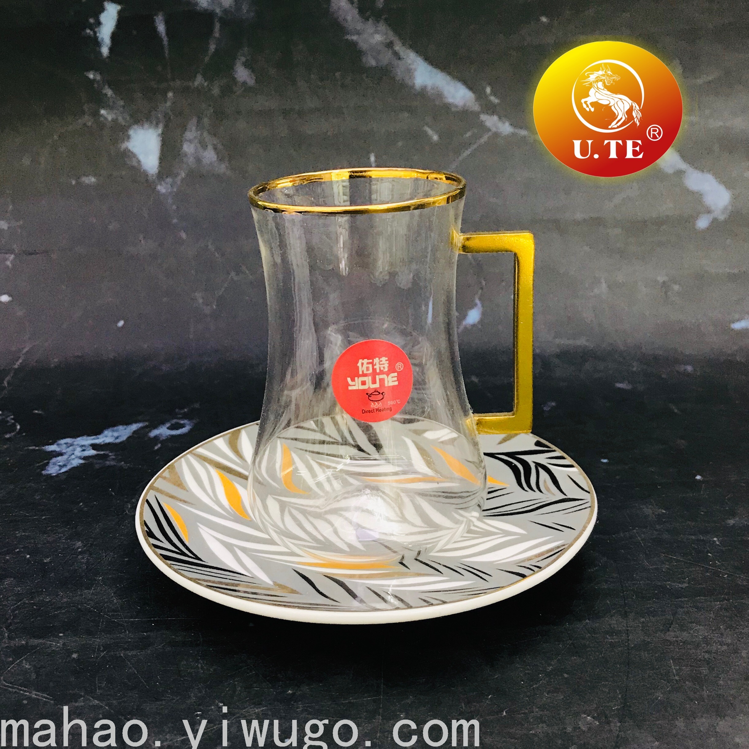 带把玻璃杯带陶瓷碟六杯六碟