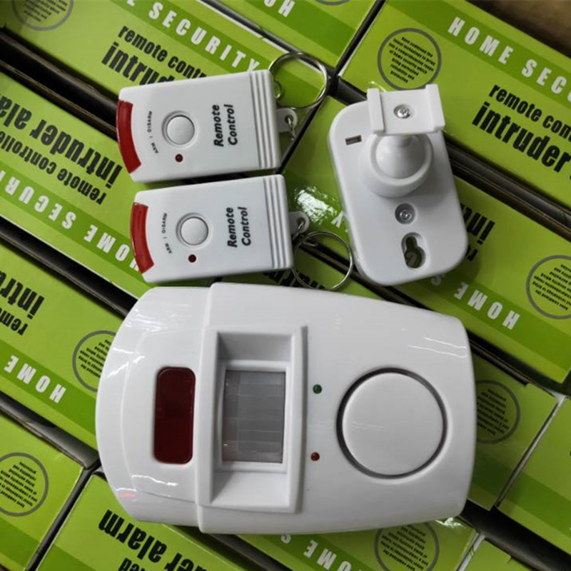 按一下遥控器,报警器进入防盗状态,有人进去防盗范围会发出120分贝左右的报警声,按一下遥控器就可以撤防,也可以夜间使用。
