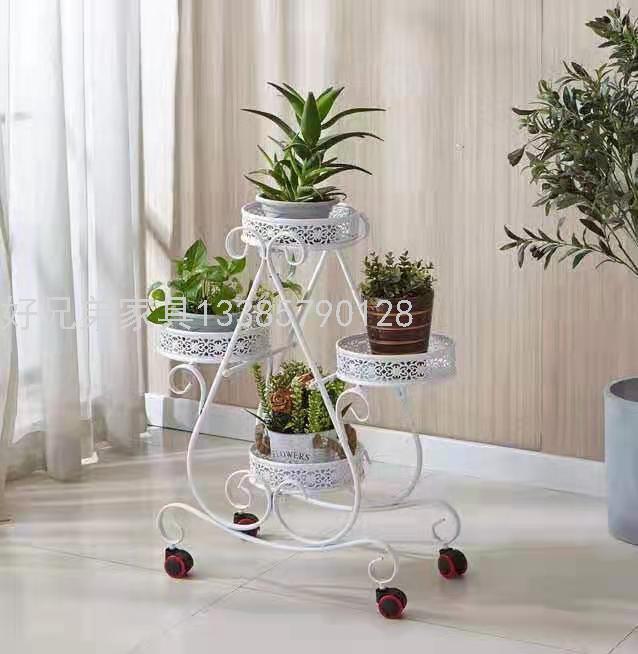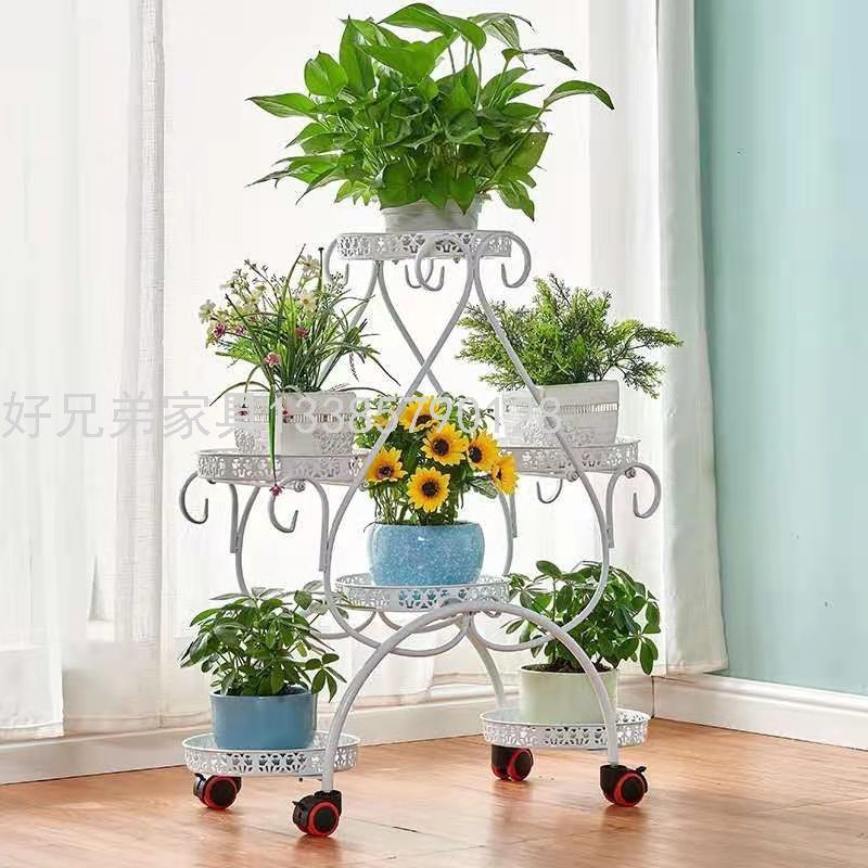 移动带轮铁艺花架可拆装室内客厅装饰置物架多层花盆架子