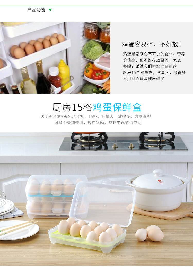 厨房15格放鸡蛋的收纳盒冰箱用鸡蛋保鲜盒多层鸡蛋盒塑料装鸡蛋托 投诉