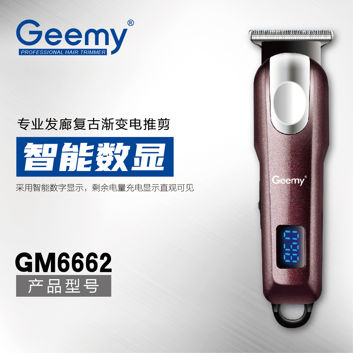 Geemy6662充电式油头理发器剃光头大功率电推剪 理发推子 充电式