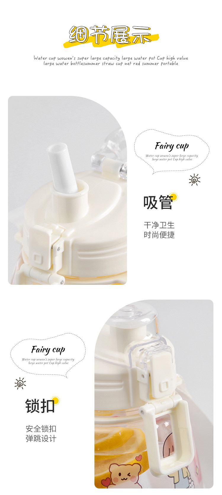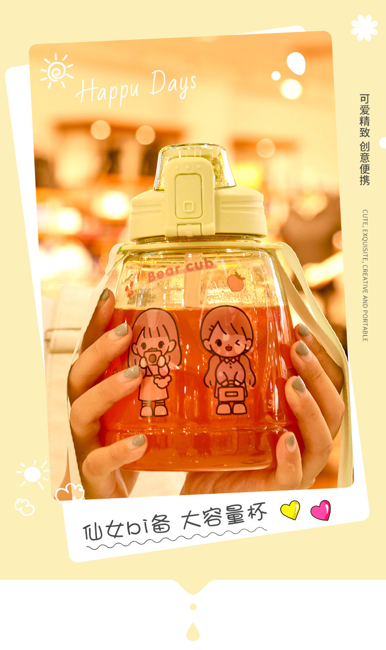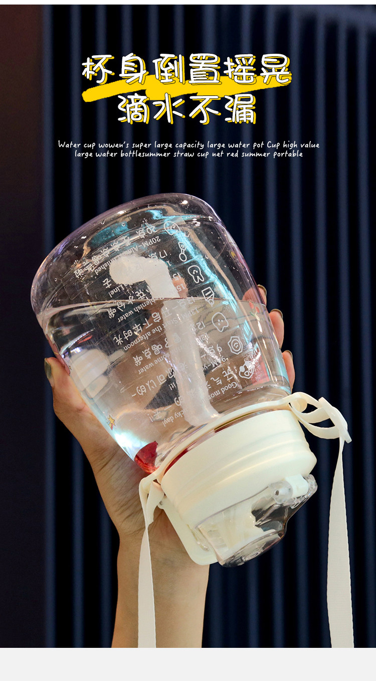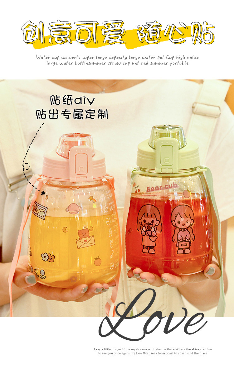水杯女可爱夏季大容量水壶网红高颜值吸管夏天大肚肚便携儿童杯子