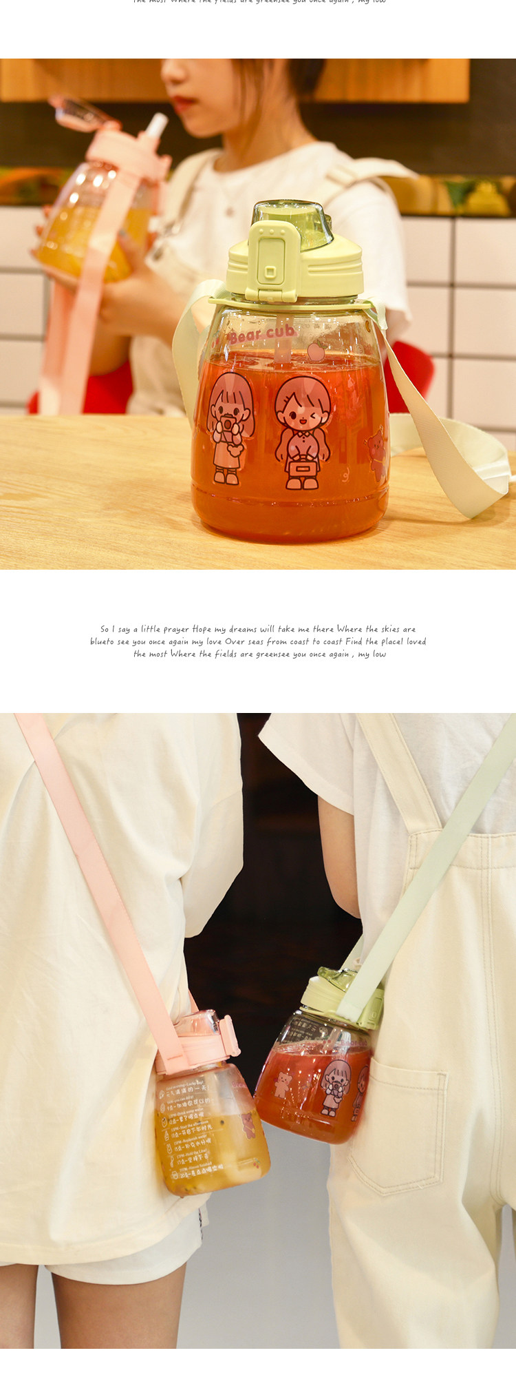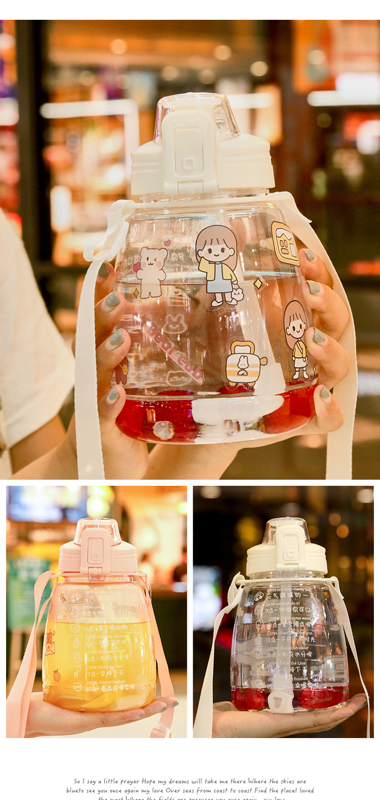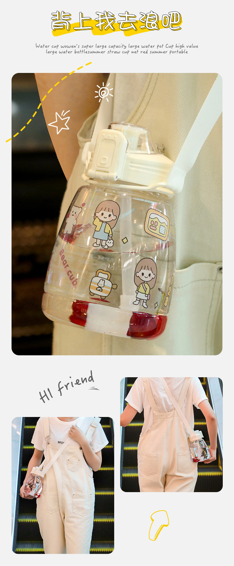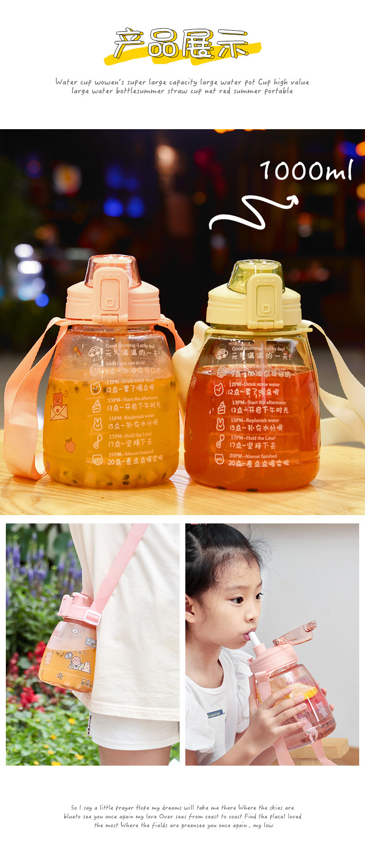 水杯女可爱夏季大容量水壶网红高颜值吸管夏天大肚肚便携儿童杯子