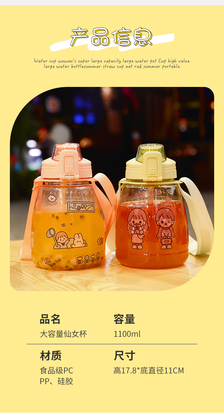 水杯女可爱夏季大容量水壶网红高颜值吸管夏天大肚肚便携儿童杯子 投诉