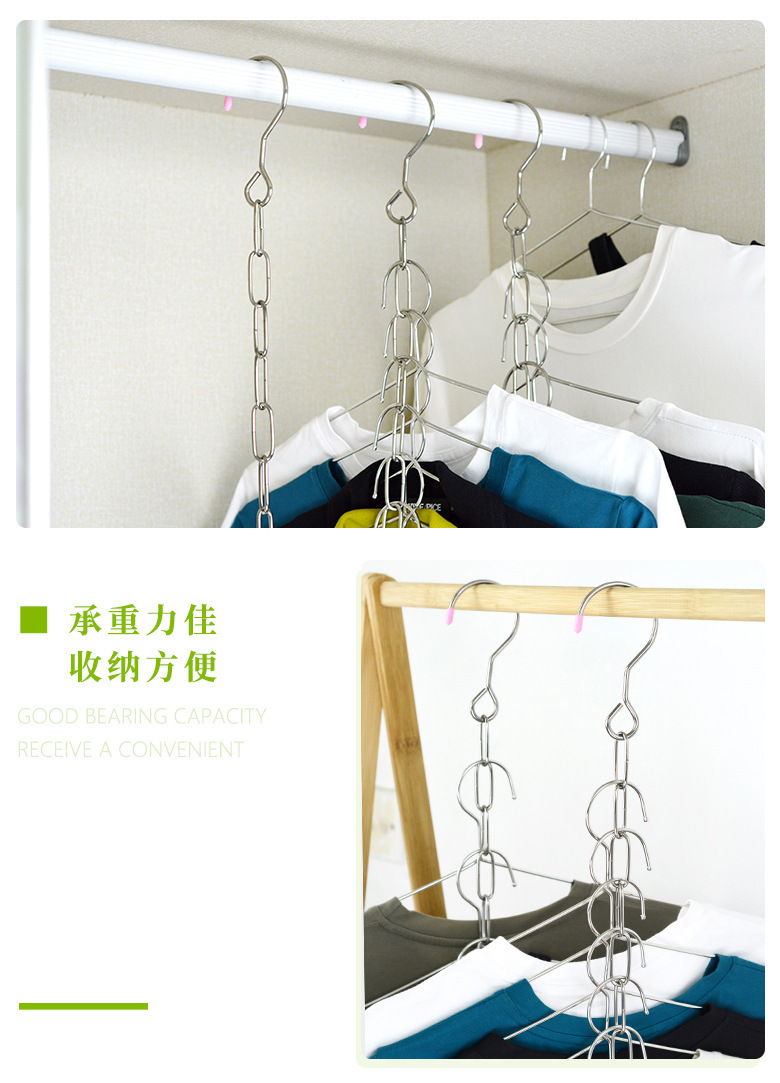 不锈钢晾衣链衣柜收纳链10衣架收纳神器创意衣橱服装多功能挂衣钩