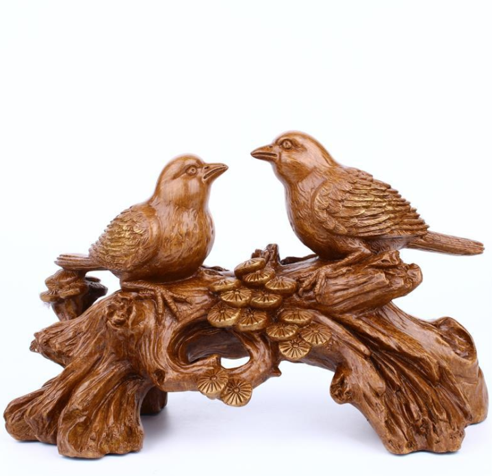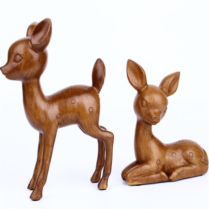 【品名】:创意木色情侣鹿情侣喜鹊树脂摆件
