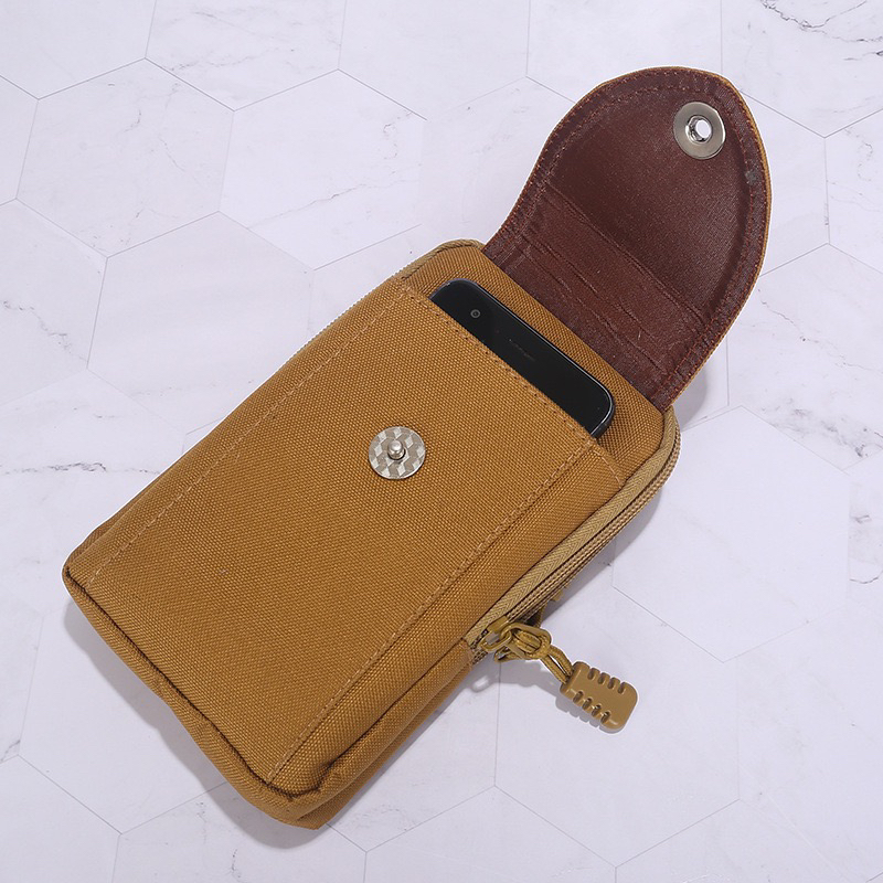 工厂新款帆布腰包男时尚磁扣竖款手机包户外休闲穿皮带零钱包批发 投诉