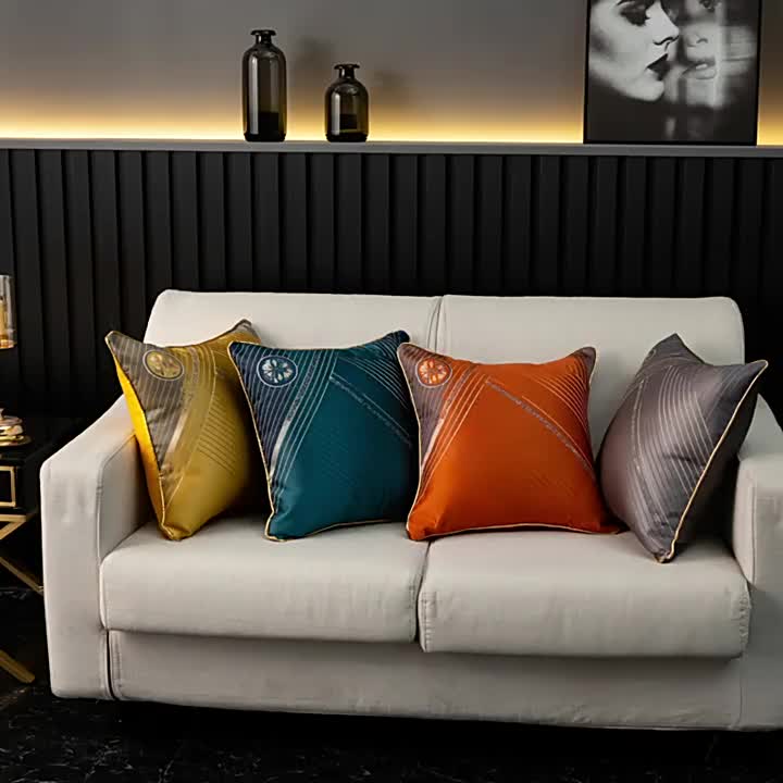 现代轻奢沙发抱枕靠垫套新中式别墅样板间贡缎提花靠枕墨绿色靠包 投诉