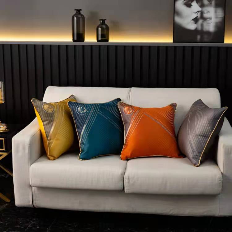 现代轻奢沙发抱枕靠垫套新中式别墅样板间贡缎提花靠枕墨绿色靠包 投诉