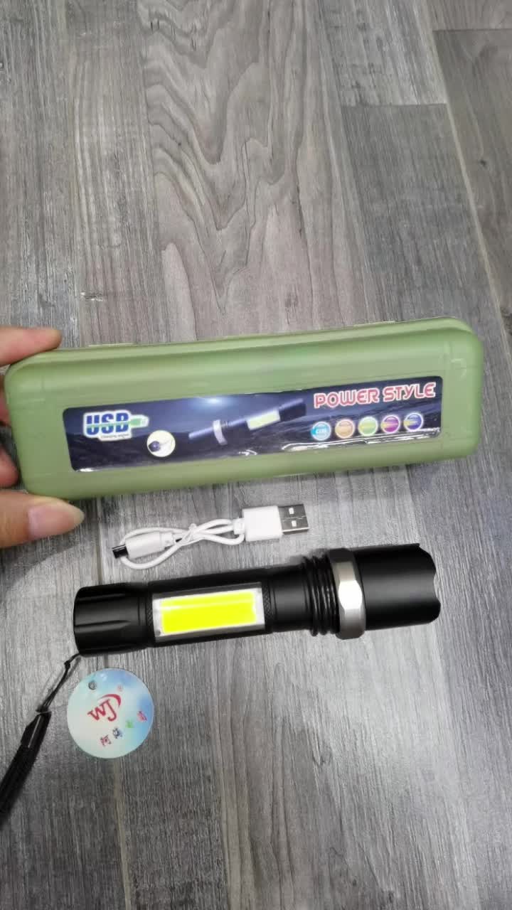 铝合金手电筒USB线充电COB十XPE灯泡可调节光源,照射距离300到500米 用于户外运动,登山,骑行,巡逻等等可充电,续航时间久